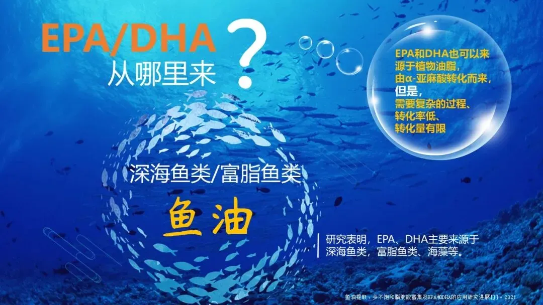直接来源:鱼油,很简单,鱼油中主要成分就是EPA和DHA, 还有海藻油,主要成分是DHA。所以,想要直接获取EPA和DHA,要么吃鱼油,要么就是吃大量的深海鱼类,富含脂肪的鱼类来获取。