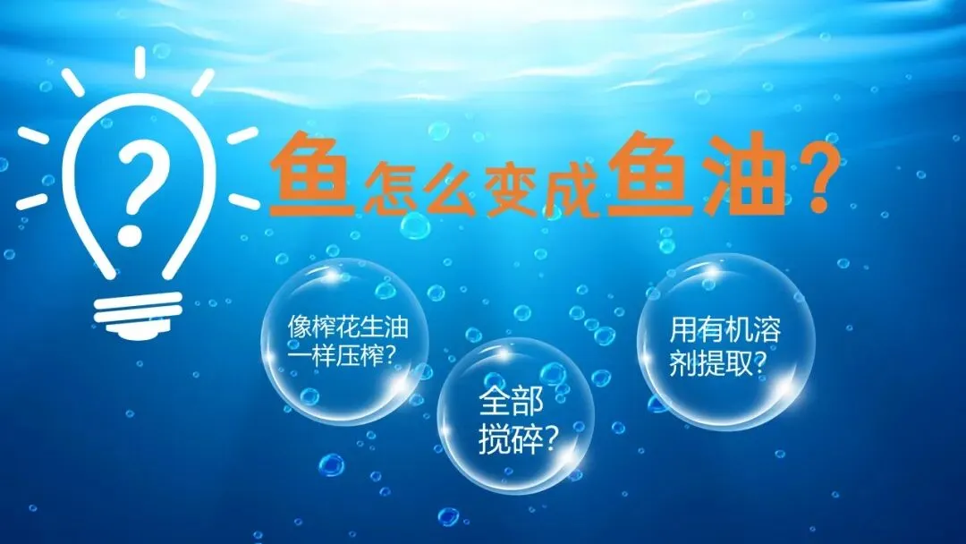 我们可以发挥一下自己的想象力,想想看,一条鱼,是经过怎样的一系列操作,变成鱼油的。脑海里会不会一下子想到花生榨花生油的场面?难道鱼也是这样压榨的吗?或者是用有机溶剂提取?那么里面会混进去有机溶剂吗?