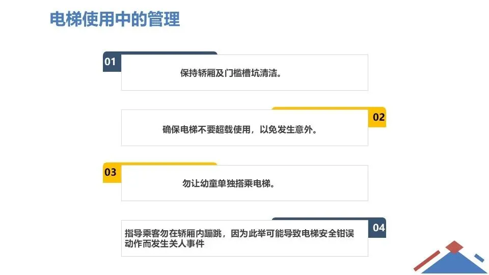 当前位置:首页>课件>安全课件 | 电扶梯安全使用(47页)