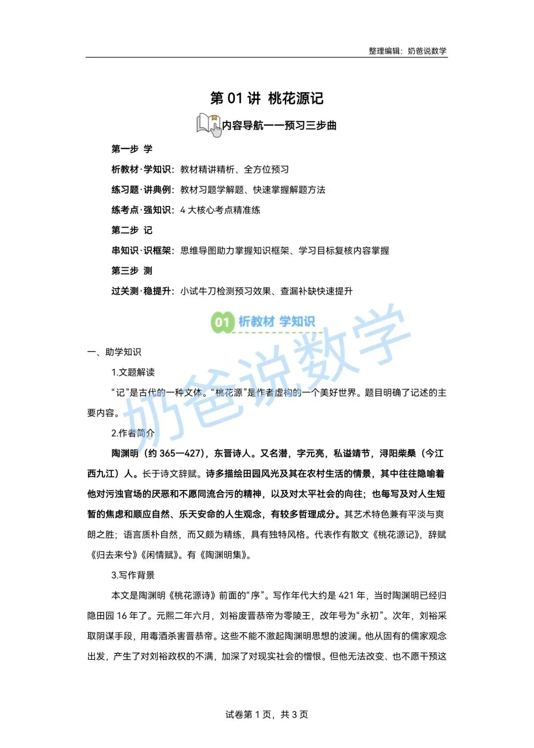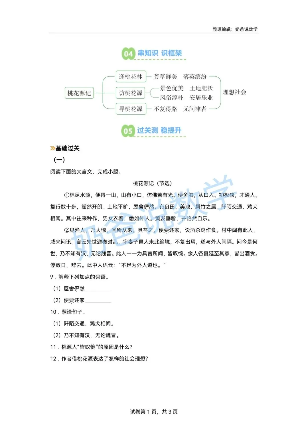 寒假预习讲义|八下语文第1讲《桃花源记》(含答案)