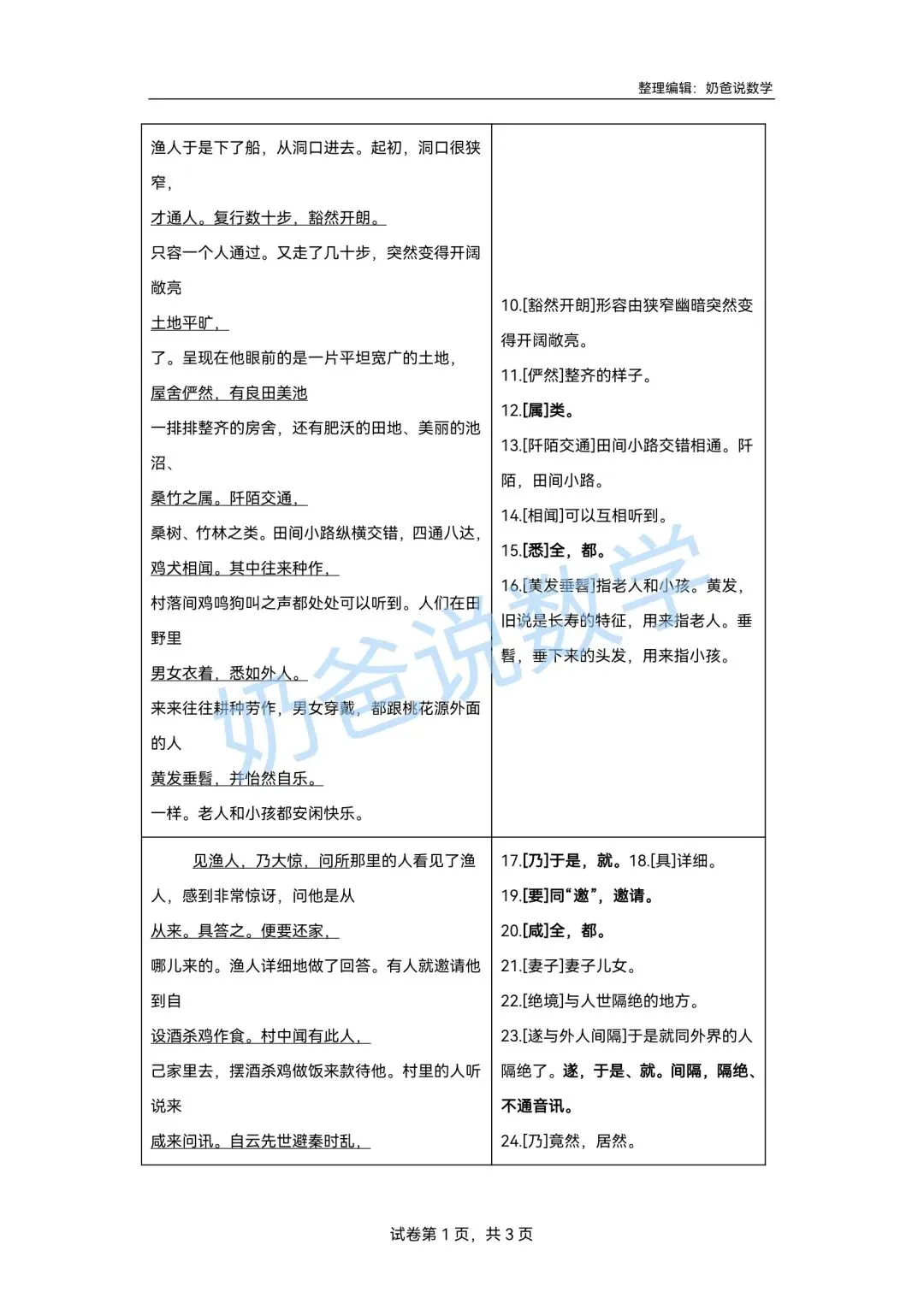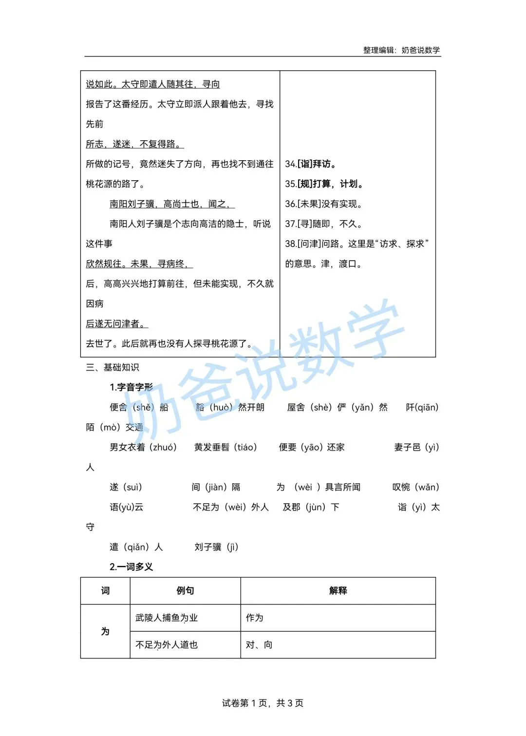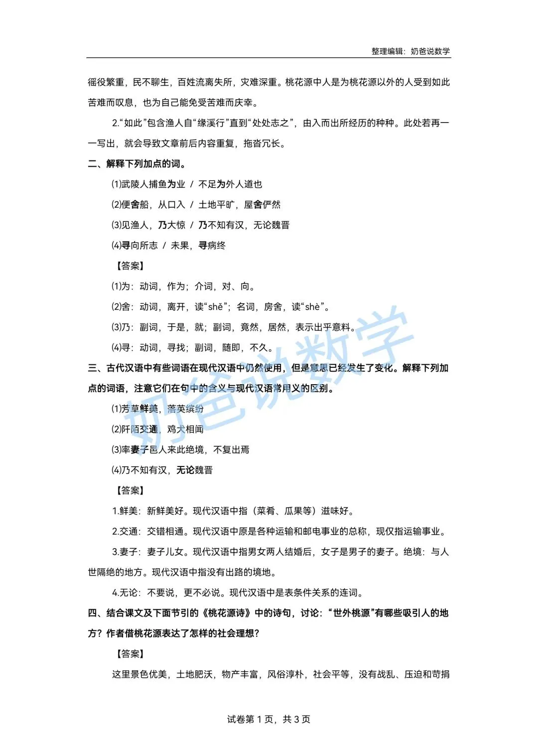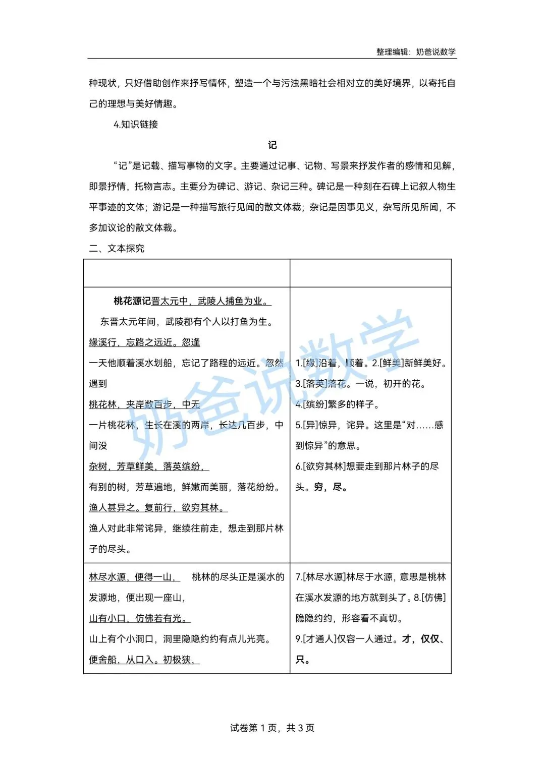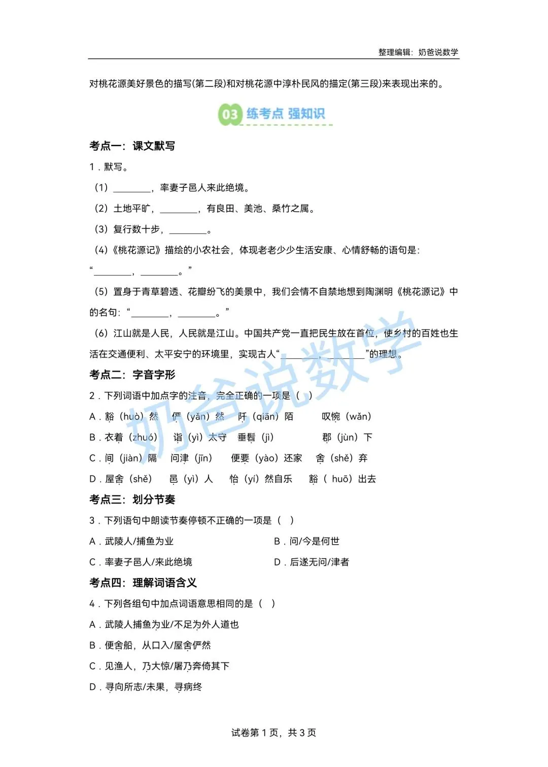 >寒假预习讲义|八下语文第1讲《桃花源记》(含答案)