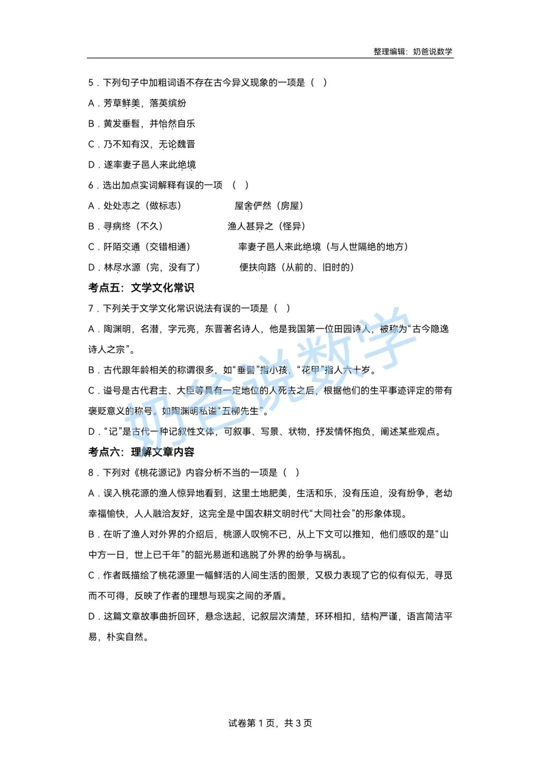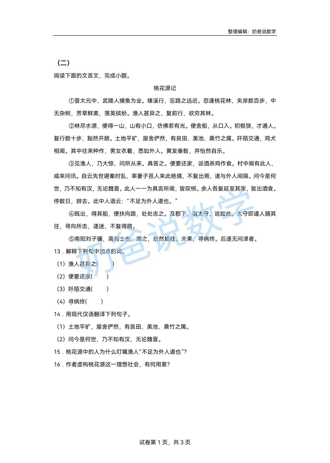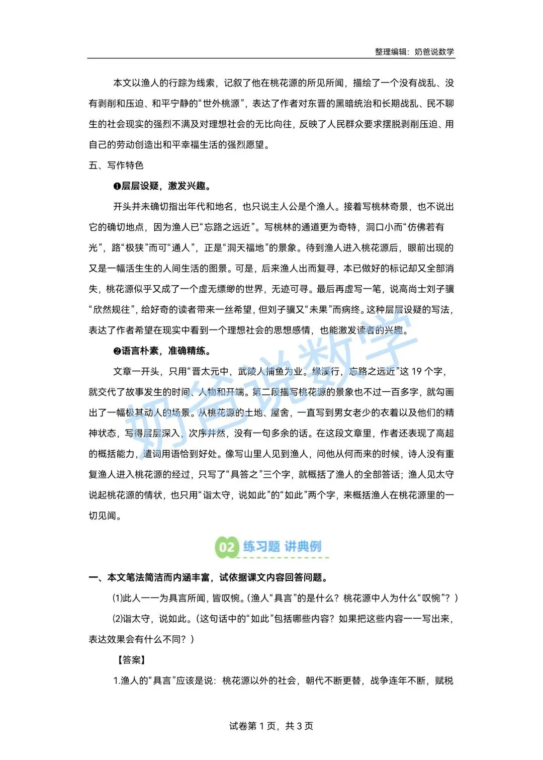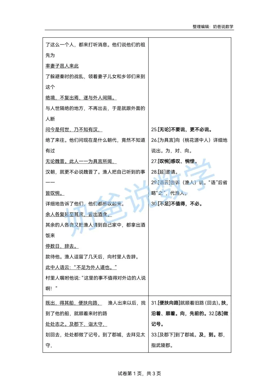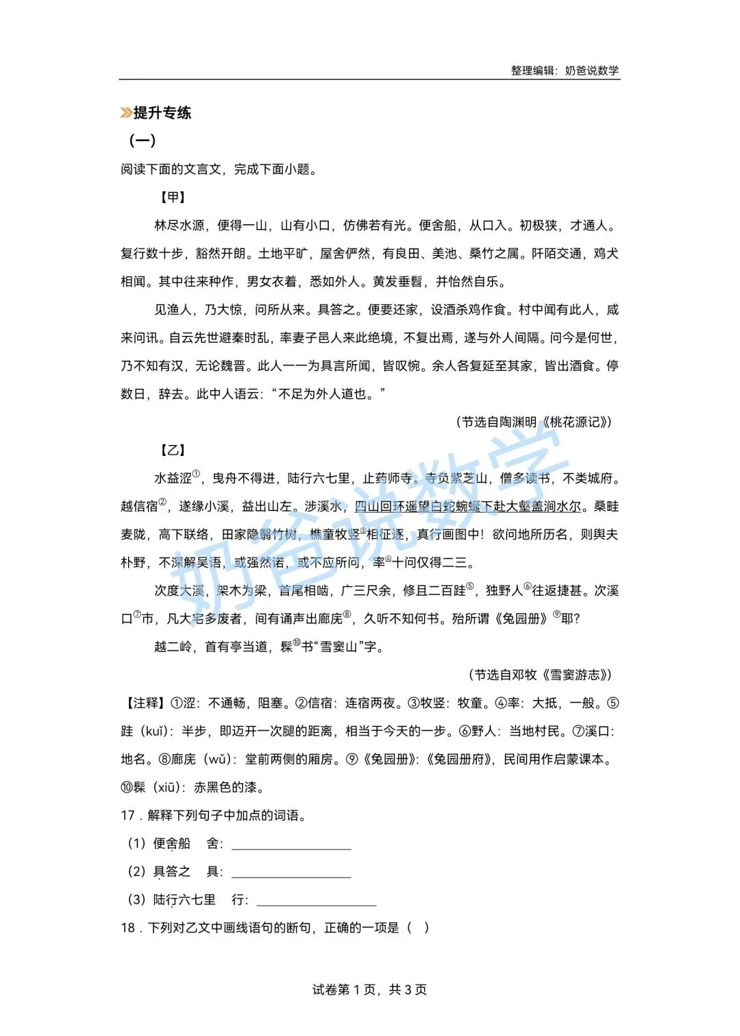 >寒假预习讲义|八下语文第1讲《桃花源记》(含答案)
