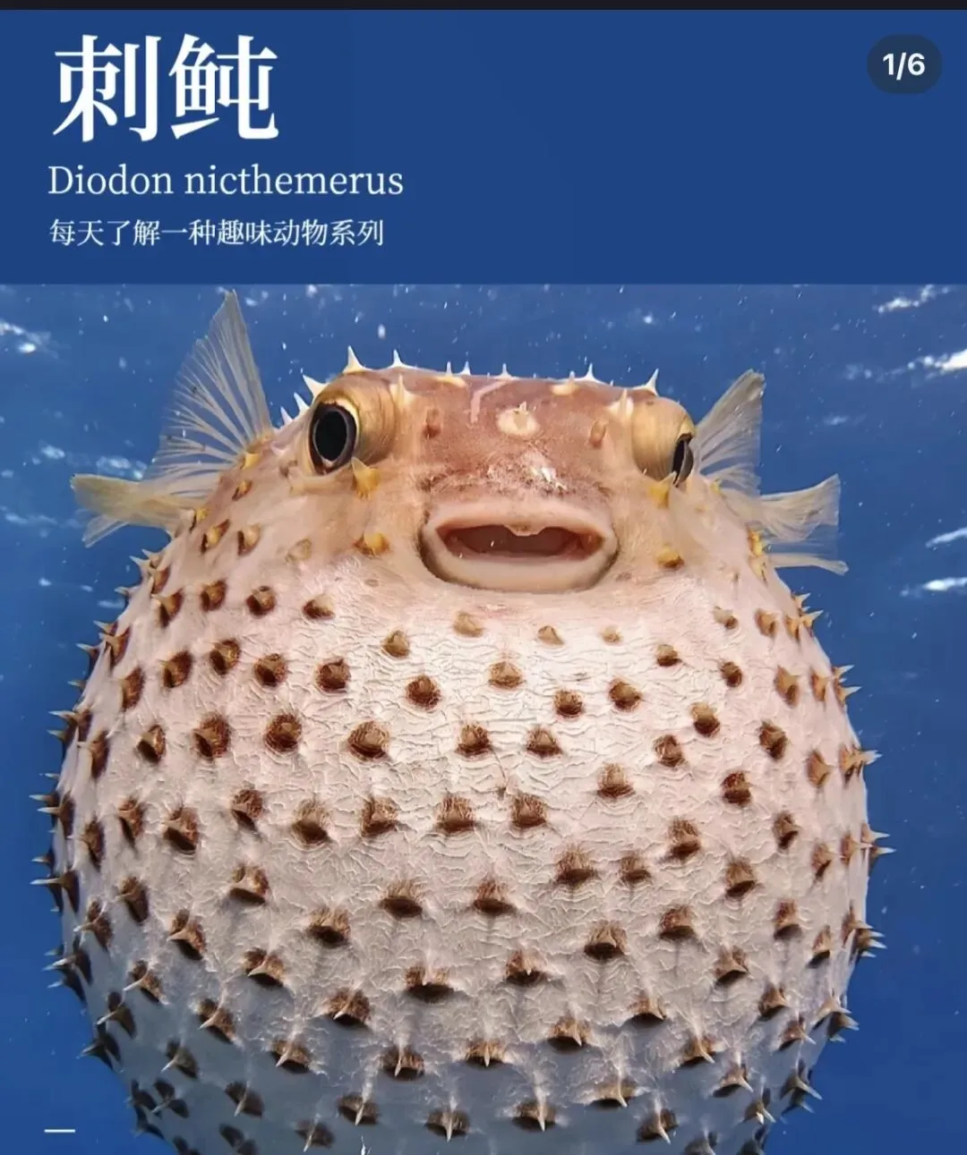 2. 科普动画与观察:播放刺豚科普短片,引导幼儿观察:“刺豚平时的身体是什么形状?鼓起来后像什么?它的刺长在哪里?颜色有哪些?” 结合实物模型(或高清图片),让幼儿触摸模型表面的“尖刺”(安全材质),感受刺豚的外形特点。