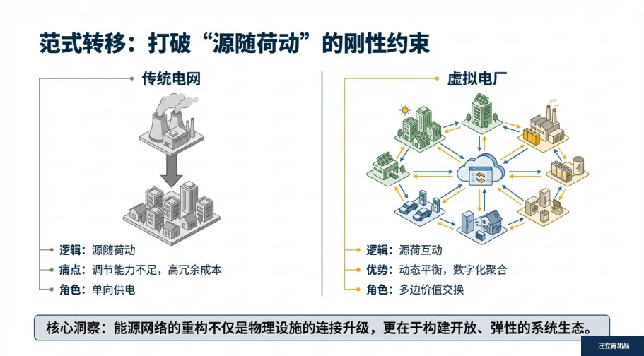 你以为未来用电还是“电厂发电、我们花钱买”?格局打开!这份行业报告揭露了一个颠覆认知的新趋势:虚拟电厂正在重构整个能源经济,从“源随荷动”的旧时代,直接迈入“源荷互动”的新范式。它不是传统意义上的电厂,而是靠数字化技术把分散的屋顶光伏、家用储能、充电桩甚至空调都聚合成“隐形电站”,既能解决电网调节难题,更能让每一个用电的人,从被动消费者变成主动“产消者”——简单说,以前你只花钱用电,现在调调家电使用时间就能赚钱。