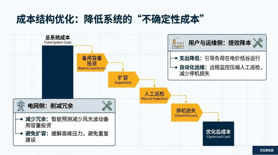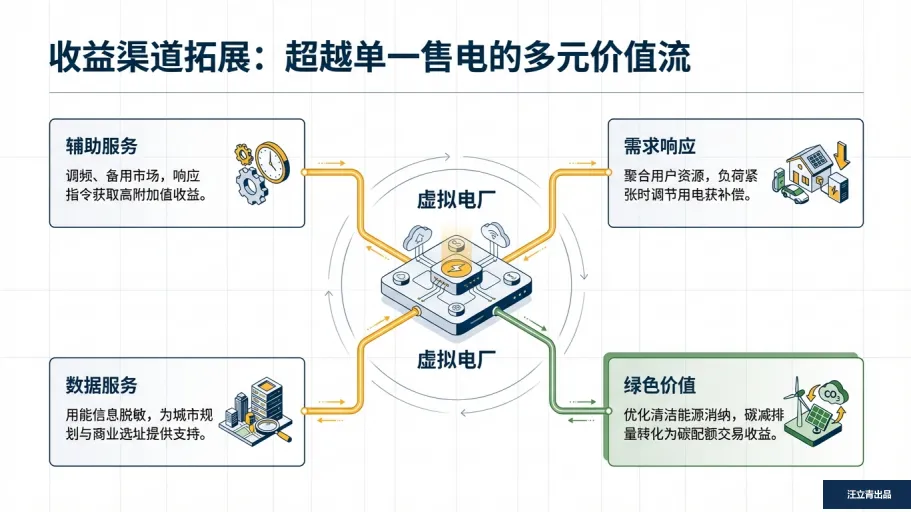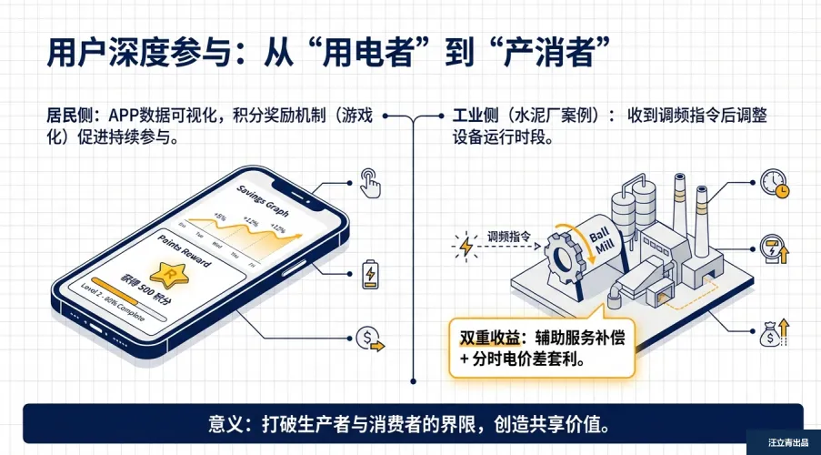 这波能源革新的核心红利就两个:降成本、多赚钱。对电网和企业来说,虚拟电厂能通过智能预测减少备用容量投资,远程运维压缩人工成本,还能缓解高峰用电压力避免重复建设;对参与其中的个人和工厂而言,收益渠道直接拉满:不仅能靠响应电网指令拿辅助服务补偿,还能通过碳交易兑现绿色价值,甚至把自家的用能数据脱敏后变现。就像水泥厂调整设备运行时段,既能拿调频补贴,又能赚分时电价差,双重收益到手;居民用个专属APP,可视化看到节能账单,积分奖励、优先保供福利全拿捏。