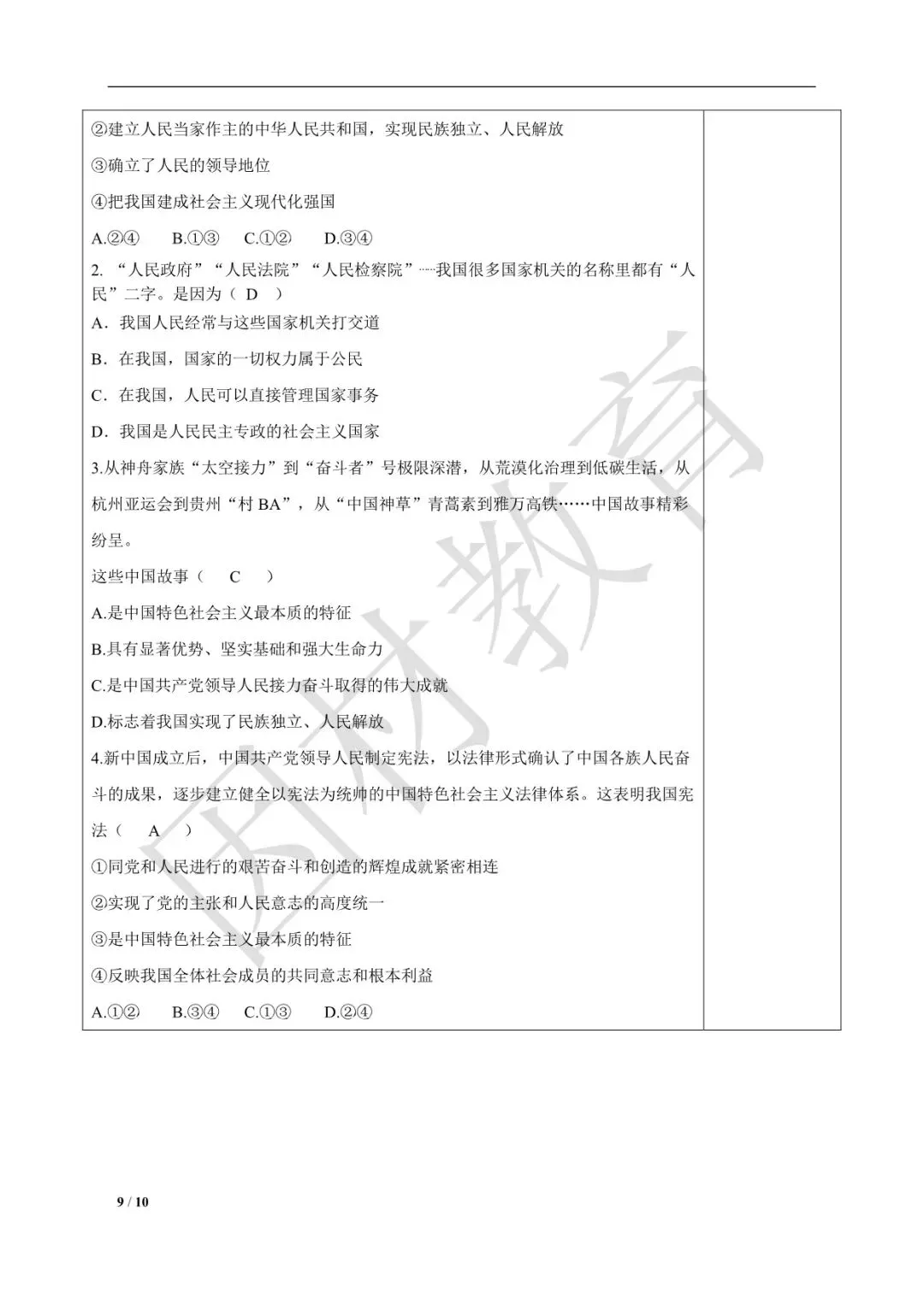 2025-2026学年八上道法选择题强化100题 4(新教材)