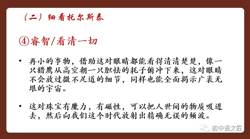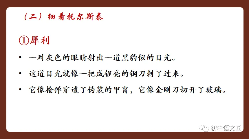 ·获取课件须知:您获取的是课件的使用权,其所有权、版权和著作权归初中语文匠所有。您获取课件后,只能自用,不得商用、出租、出借、转让、分销、发布在其它公共平台造成其在网络上广泛传播或转赠他人。发生以上侵权行为,我们将协助原作者维权。