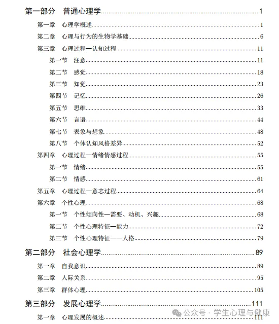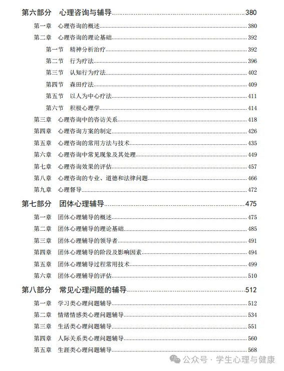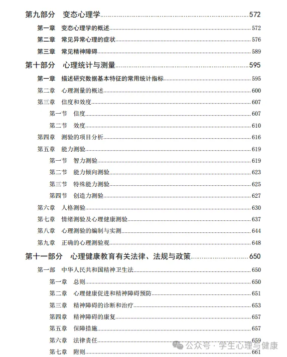 基础班讲义内容较为全面且详细,包括普心、社心、发展、教心、学校心理健康教育、心理咨询、团体辅导、变态心理学、测量与统计、相关法律法规、常见心理问题辅导等11章节内容,共计687页。