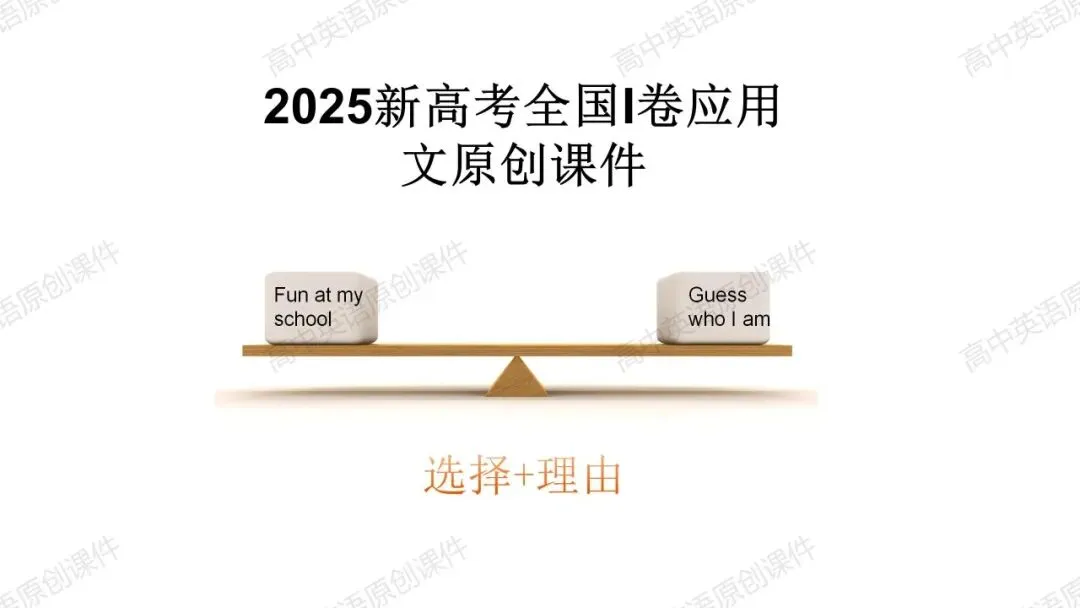 今天分享2025年英语全国I卷应用文原创课件,是“选择+理由”类应用文,考查学生表达观点和描述原因的能力。