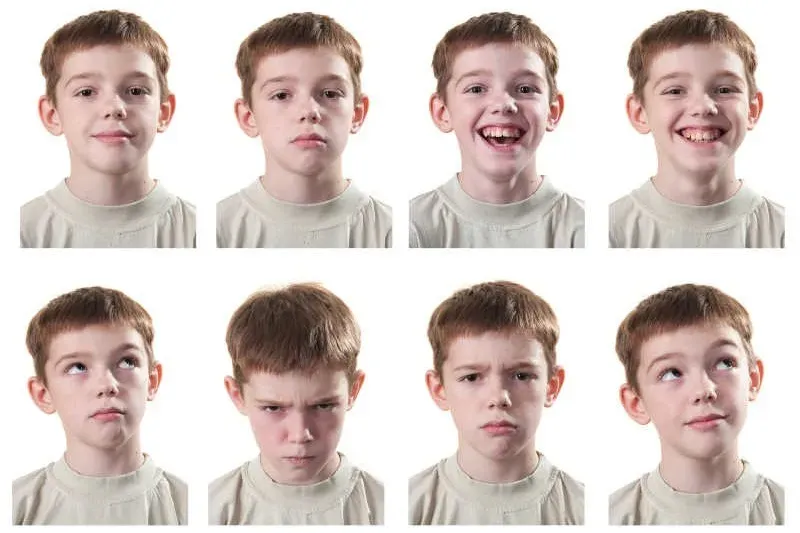 b. 展示一张卡片上的表情,并向孩子解释该表情的含义,例如说 "这是一个开心的表情,意思是这个人很高兴。"