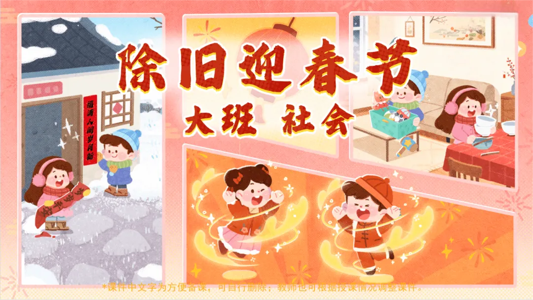 春节即将到来,幼儿园里的“年味儿”教学你准备好了吗?为了让孩子们在趣味互动中真正感受传统节日的温暖与文化,我们特别整理了8套大班春节主题互动课件,涵盖社会、美术、音乐、语言等多个领域,每一套都充满巧思,让孩子在玩中学、在做中悟!