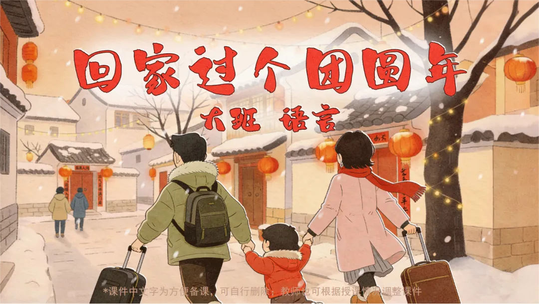 通过绘本式课件《回家过个团圆年》,孩子跟随主角“团团”一家,体验春运回家、亲人团聚的温暖历程。课件引导孩子复述故事、表达心情,在语言中感受“团圆”的情感重量。