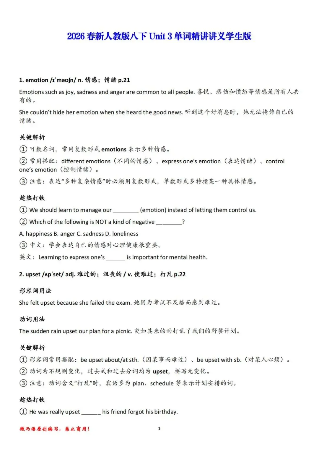 2026春秋新人教英语八下单元单词精讲精练讲义(附学生版下载)