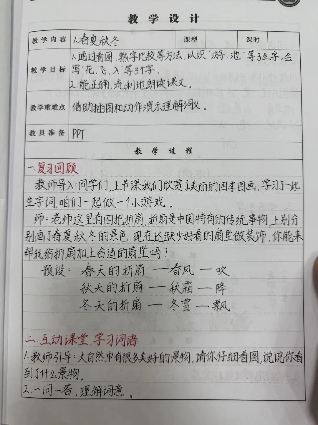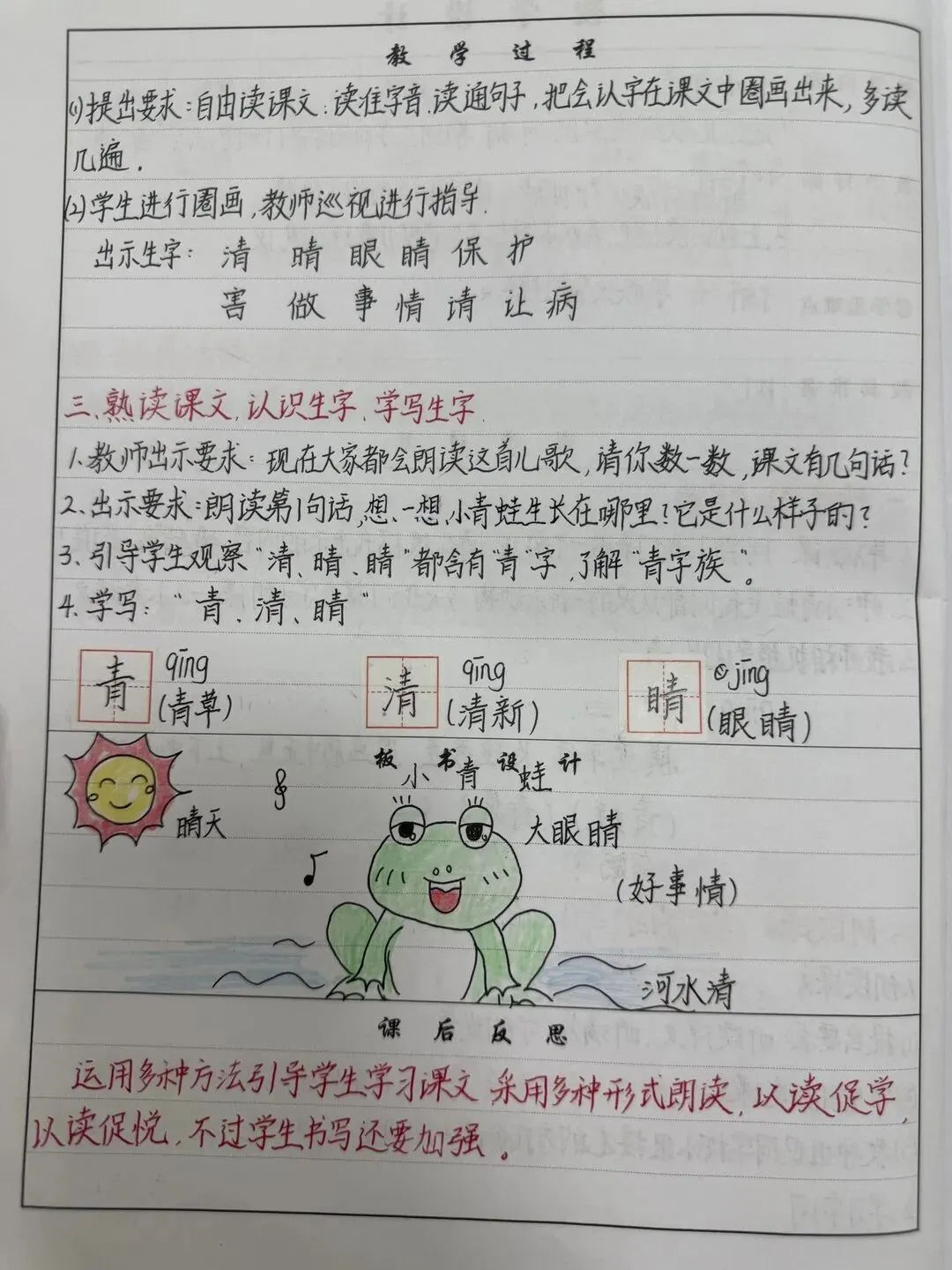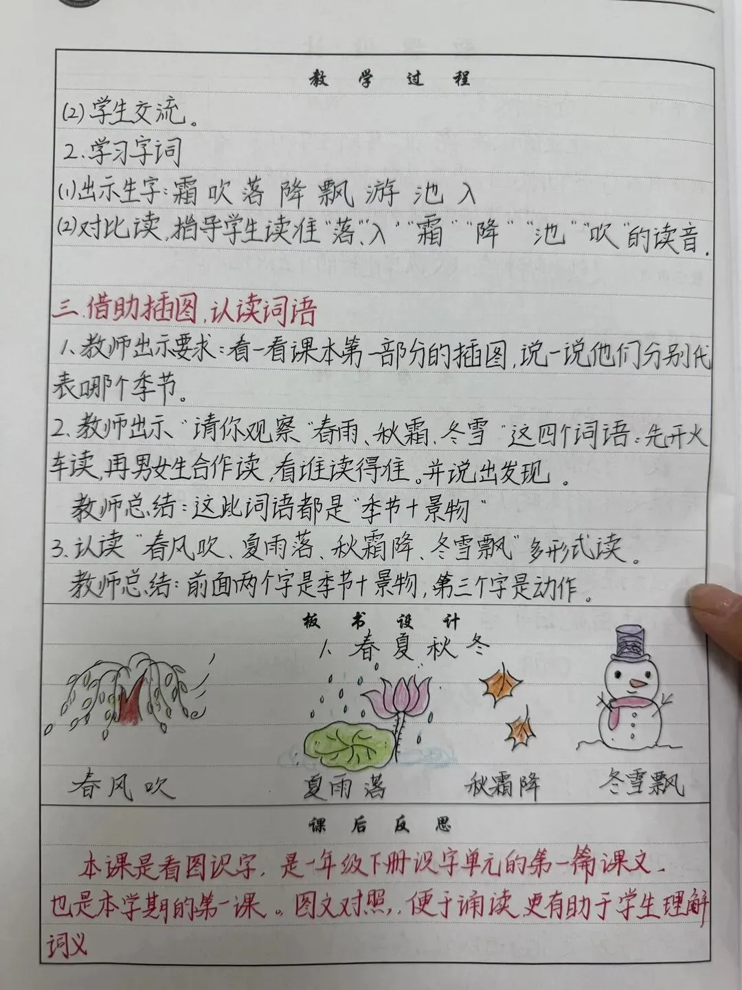 《春夏秋冬》精美教案板书反思 《姓氏歌》精美教案板书反思 《小青蛙》精美教案板书反思 教案