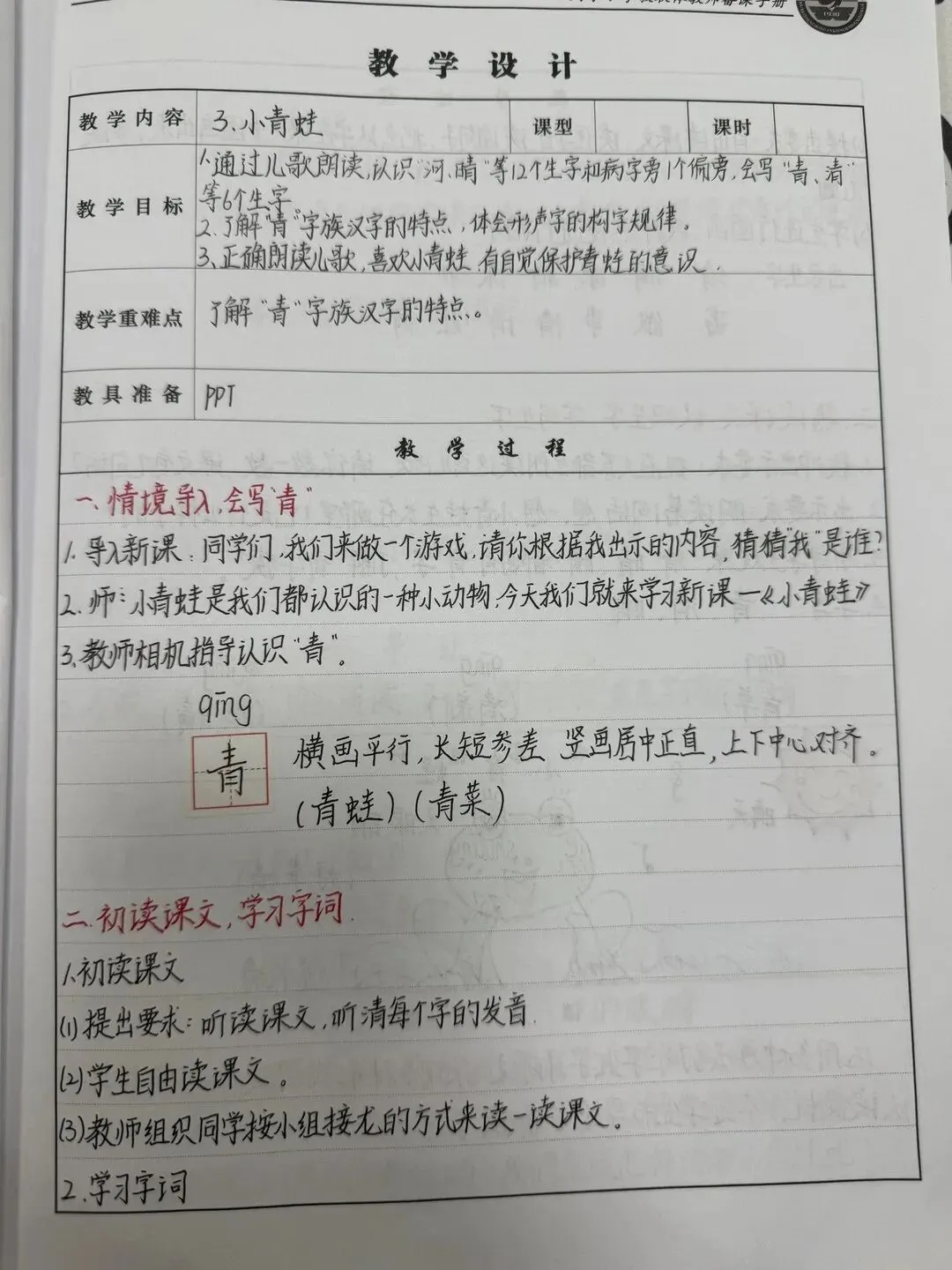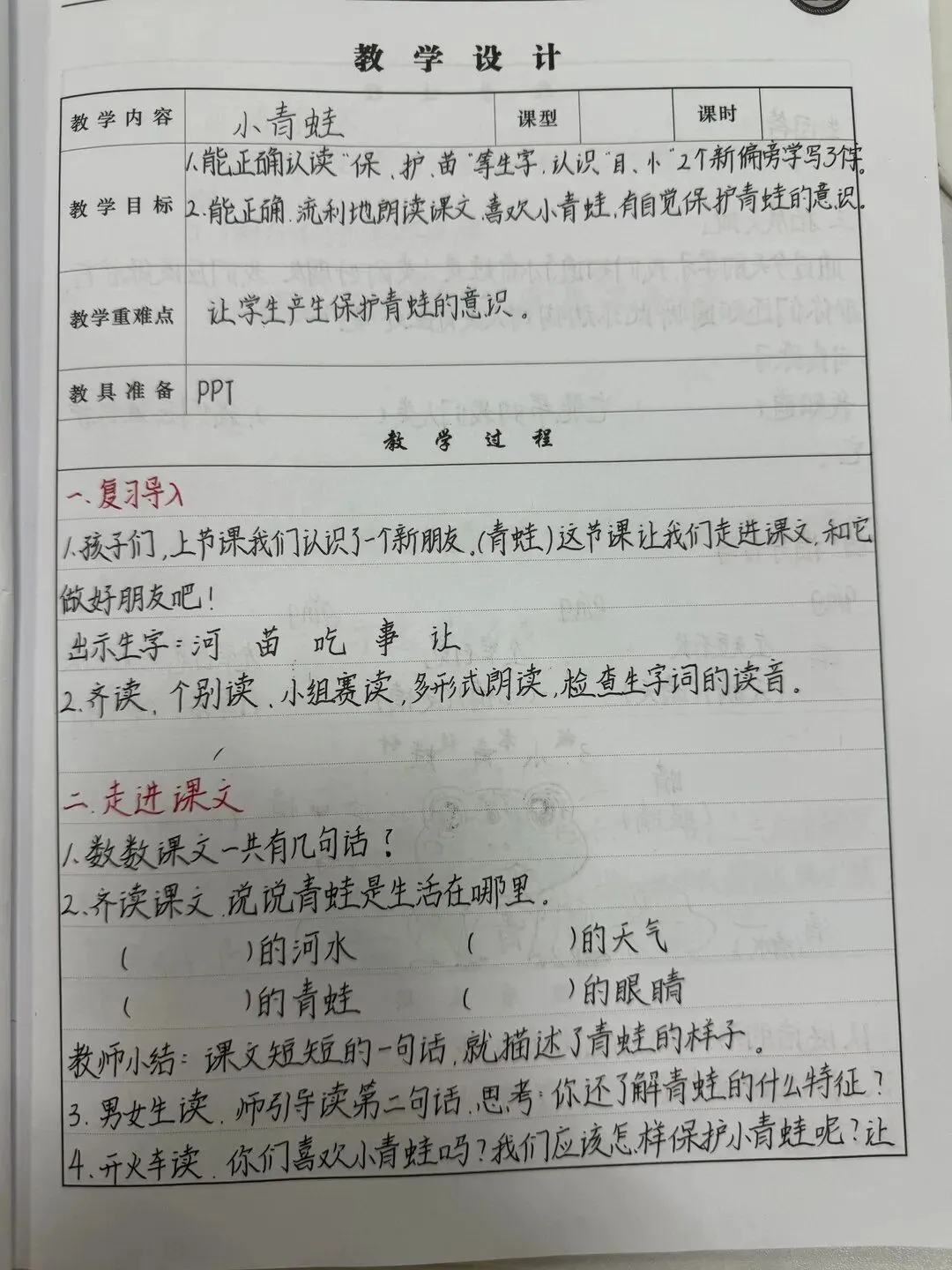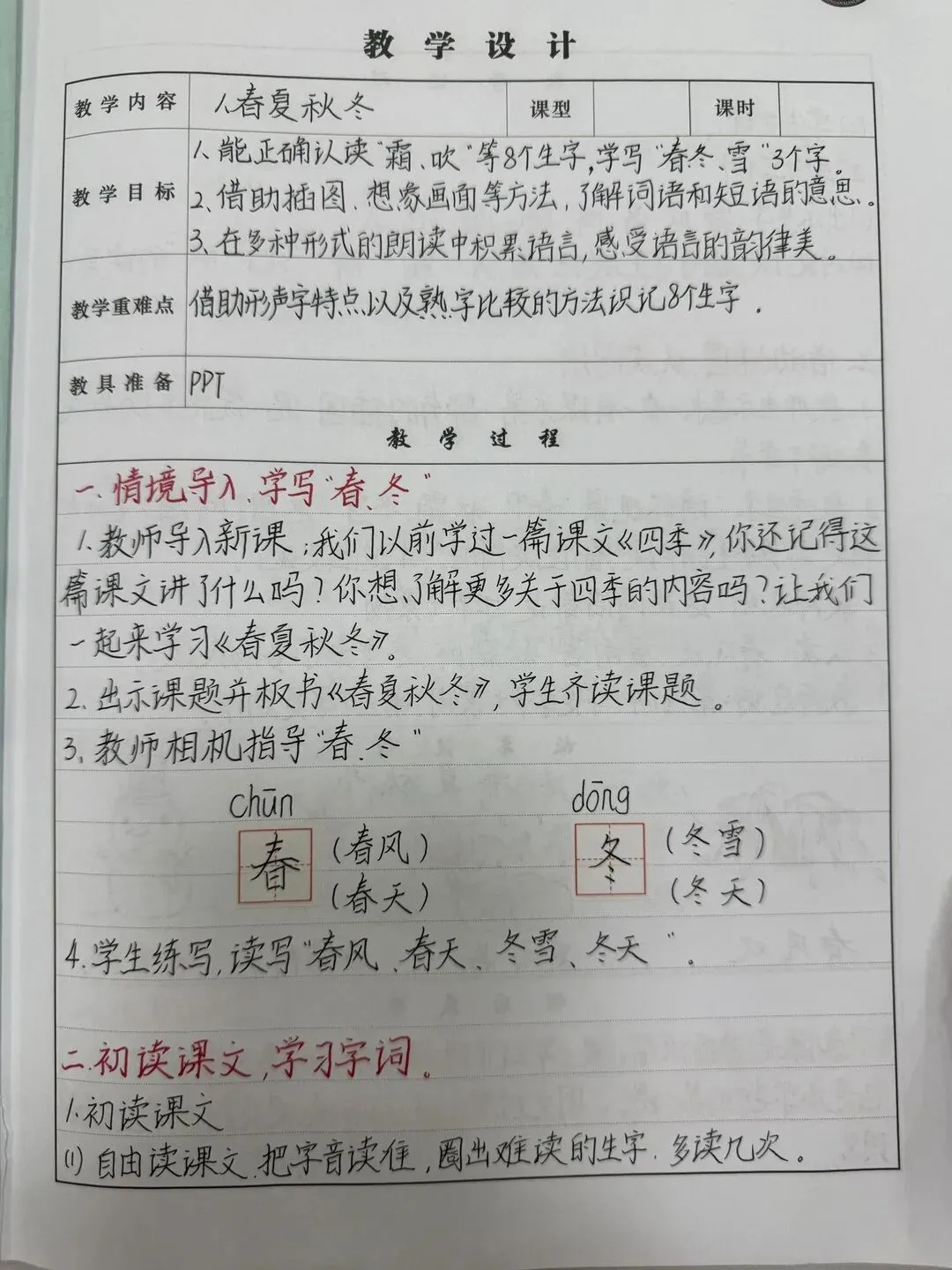《春夏秋冬》精美教案板书反思 《姓氏歌》精美教案板书反思 《小青蛙》精美教案板书反思 教案