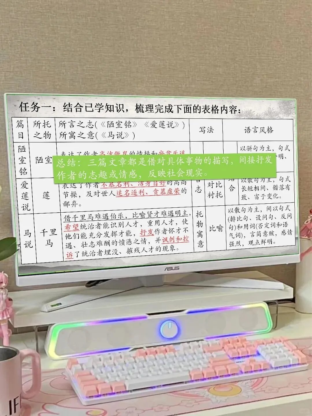 遇到联读题就头大?《陋室铭》和《爱莲说》放在一起考就懵圈? 找不出它们的共同点,更写不出它们的写法差异? 效率低下,复习半天没抓到重点,真的心累! 这份【三文联读复习讲义】简直是为对比阅读量身定做的!用任务驱动的方式带你梳理苔痕、莲影、马蹄声,逻辑清晰到哭! 联读任务清单:通过表格对比,一眼看穿三篇文章的异同。 手法进阶指南:类比与衬托的实战运用,教你如何精准踩点。 主旨升华总结:安贫乐道、洁身自好、怀才不遇,核心词全覆盖。 课外拓展迁移:从课内到课外,举一反三的能力瞬间拉满。本文内容来源于网络 版权归原作者所有、如有侵权,联系删除