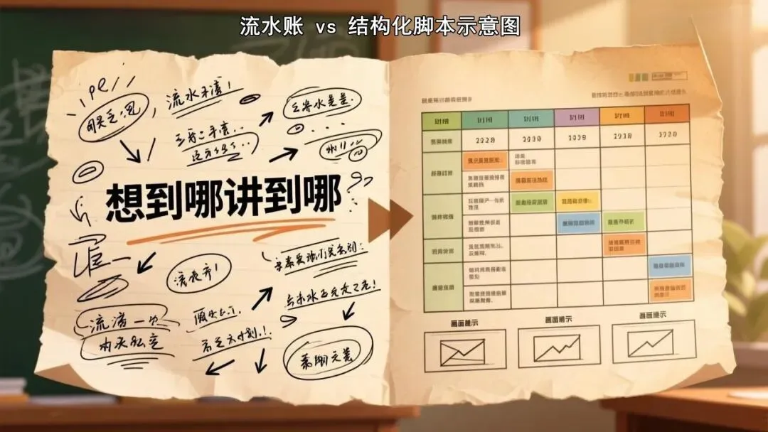 其实,出现这些尴尬,很多时候是因为老师把“教案”直接当成了“录课脚本”。老师可能没在意,认为录课都一样,没有必要事先和摄像师沟通。但是,教案不是脚本,如果摄像师真的机器一架就看手机——那才真的糟糕。
