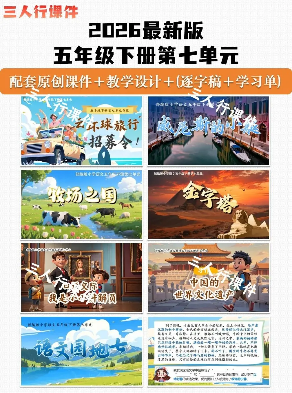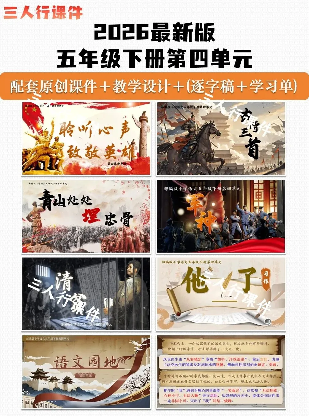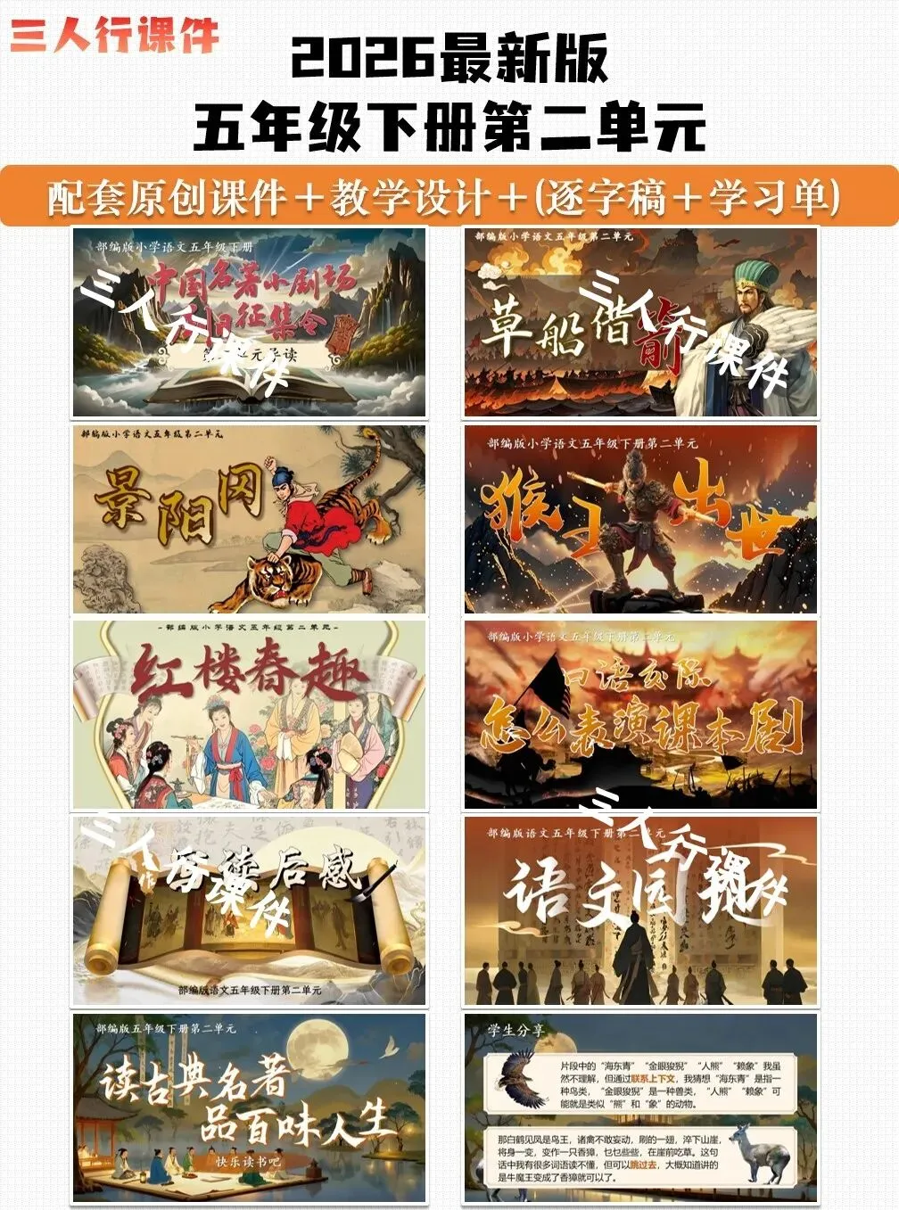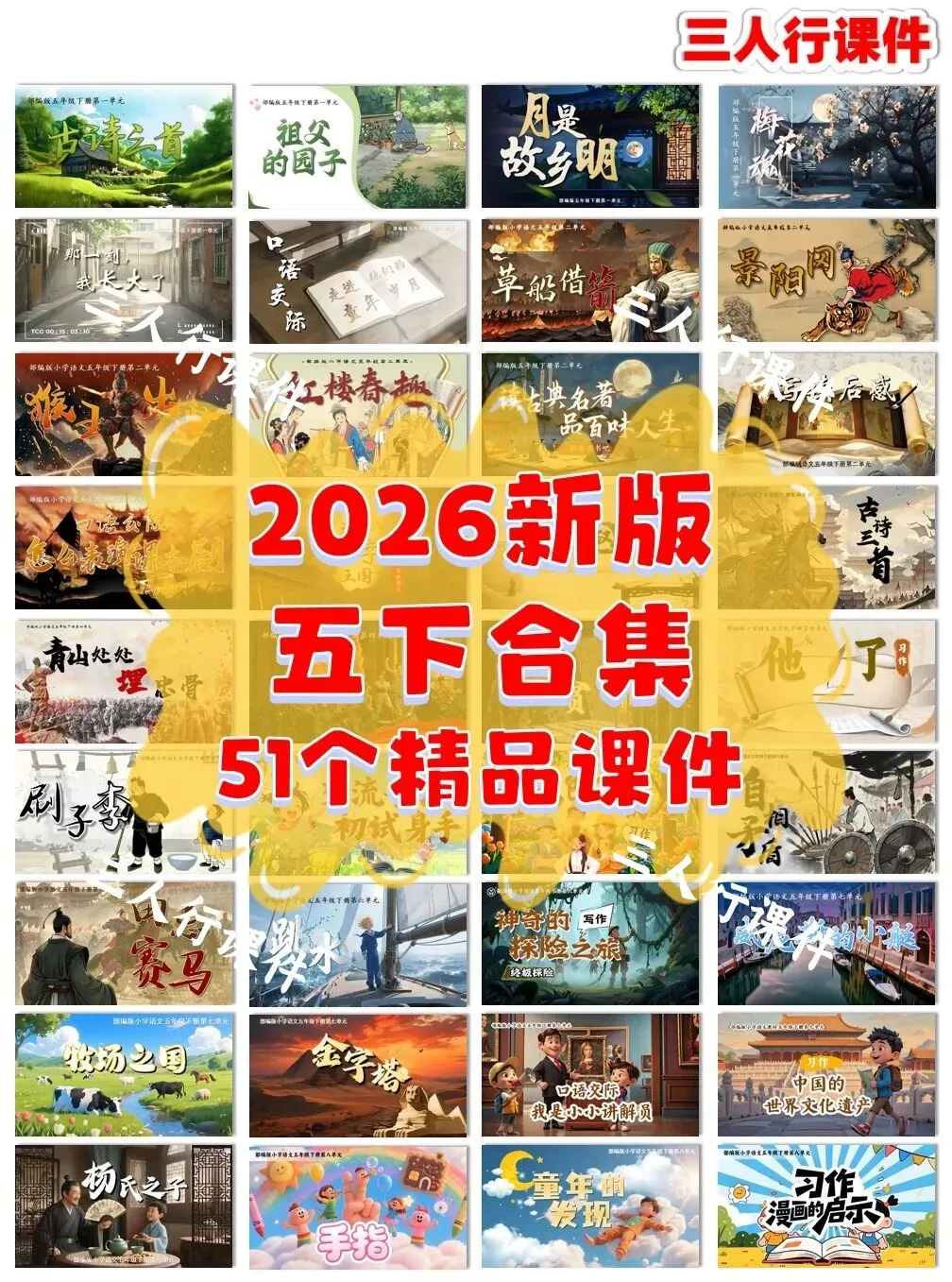 意味着您无需再逐篇找素材、逐环节磨课件,无需拼凑口语交际模板、习作素材和拓展资料,一套资源,就能搞定五下全学期所有教学场景,把更多时间留给教学本身,彻底解放备课压力。