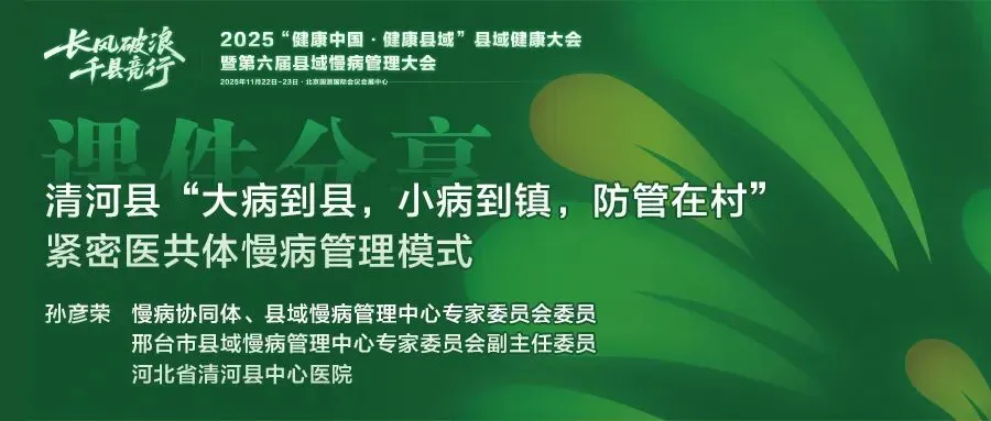 课件分享 | 清河县“大病到县,小病到镇,防管在村”紧密医共体慢病管理模式