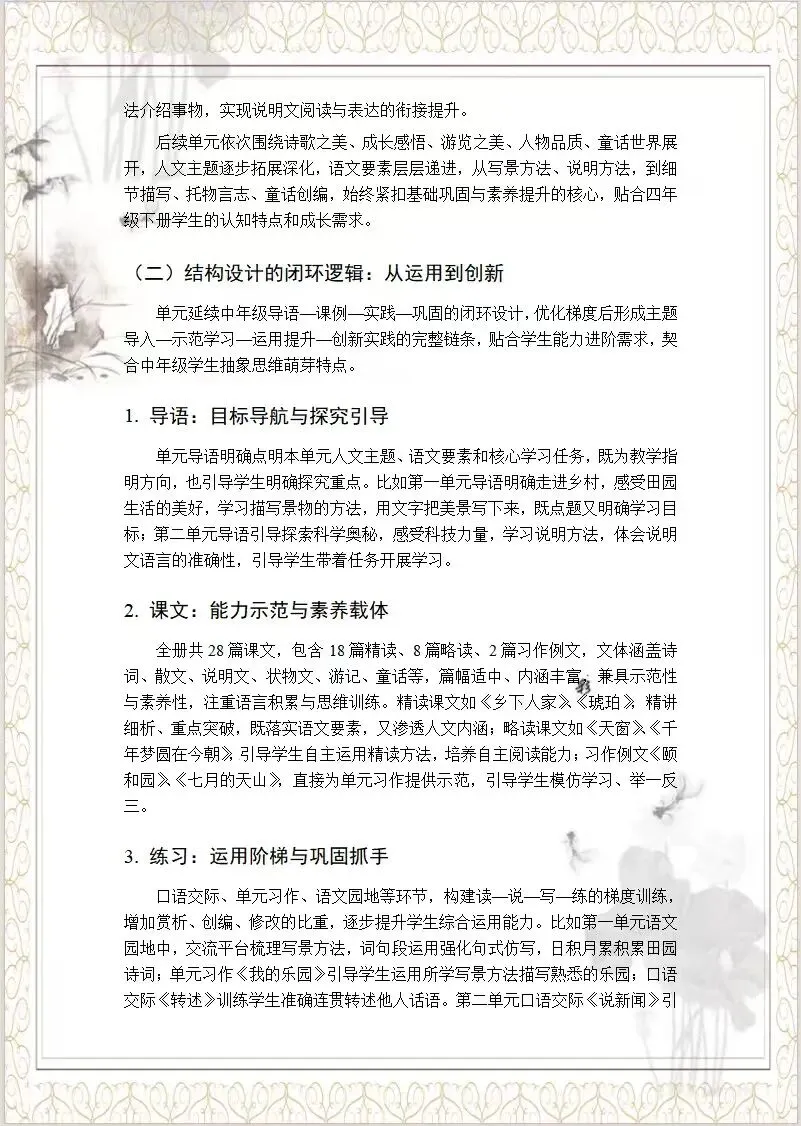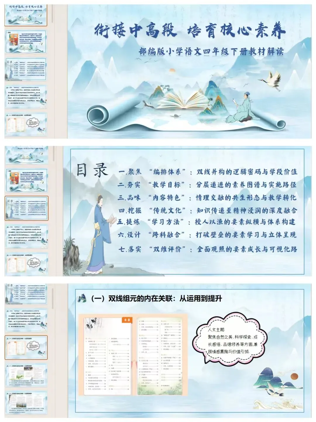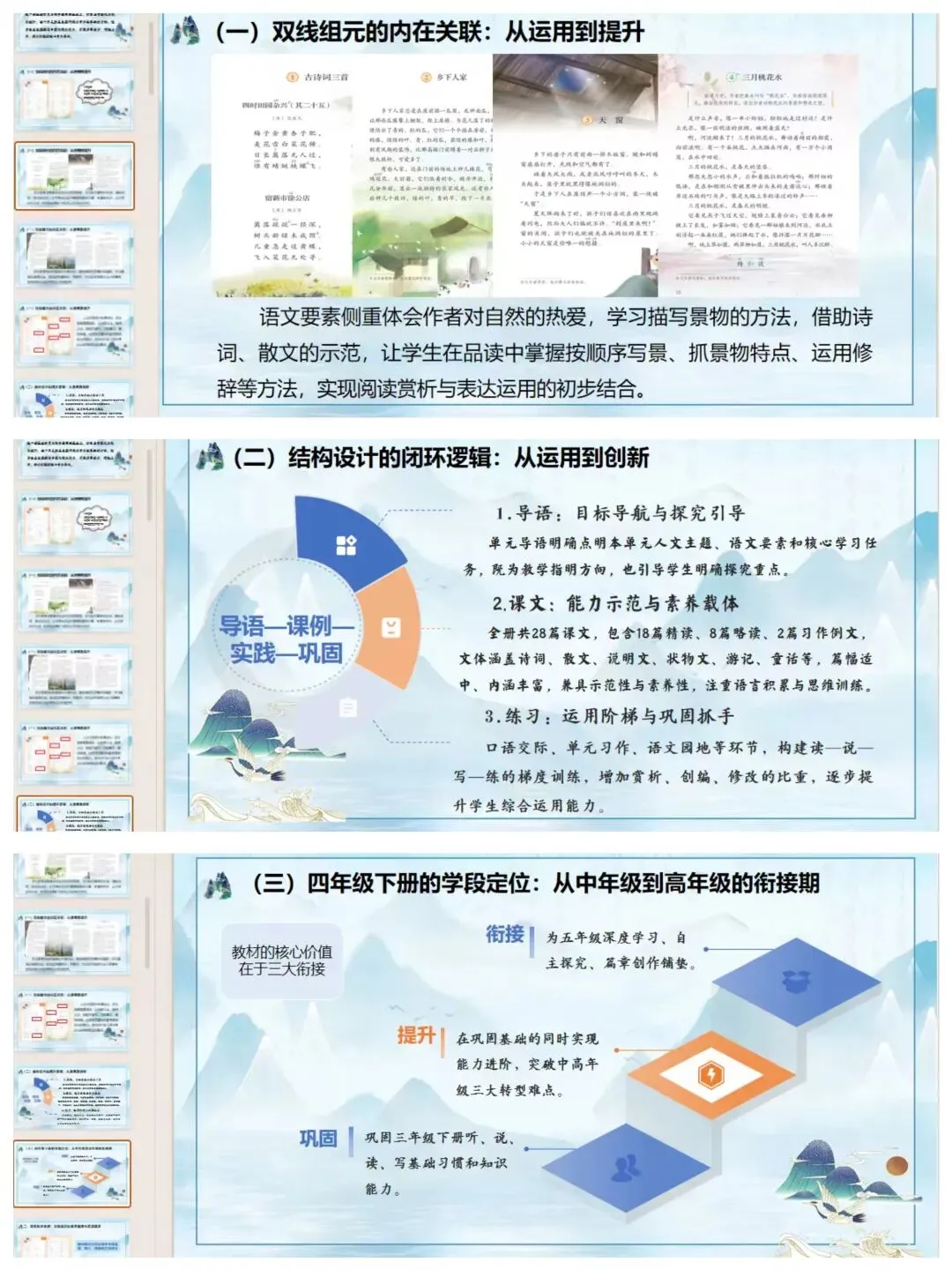 [教材解读]四年级下册语文教材解读课件+稿子(8100字)
