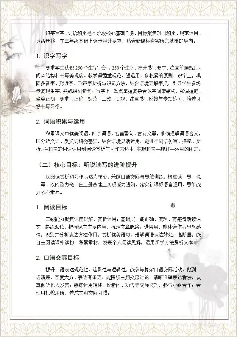 改版后三下语文核心素养教案是这样的