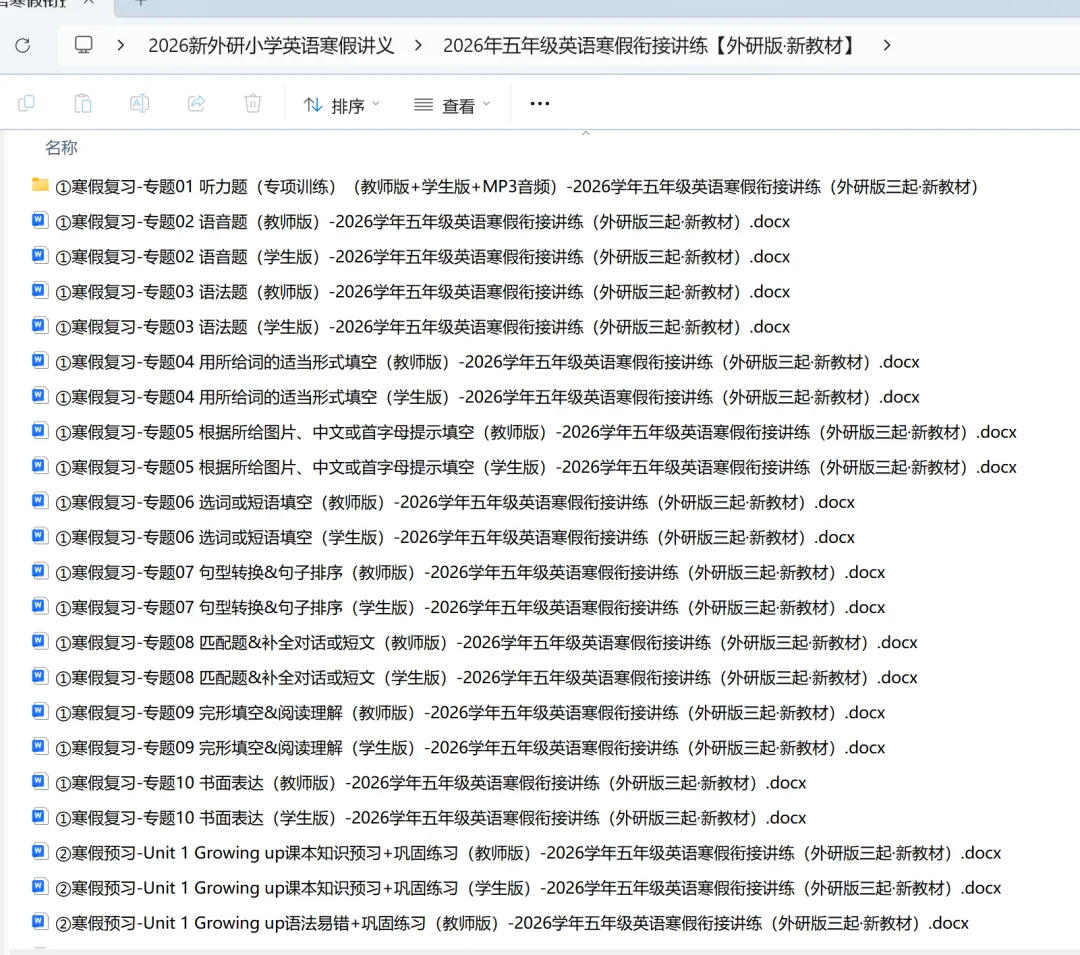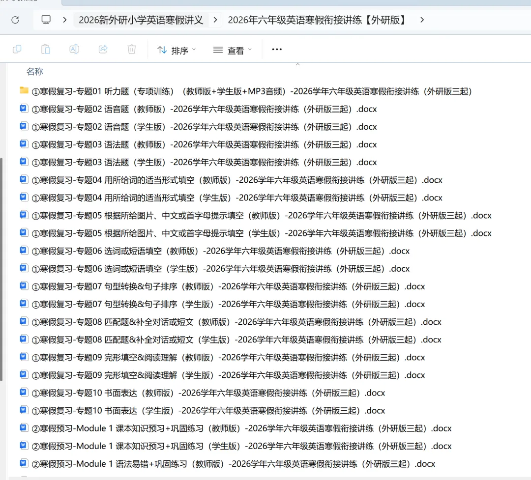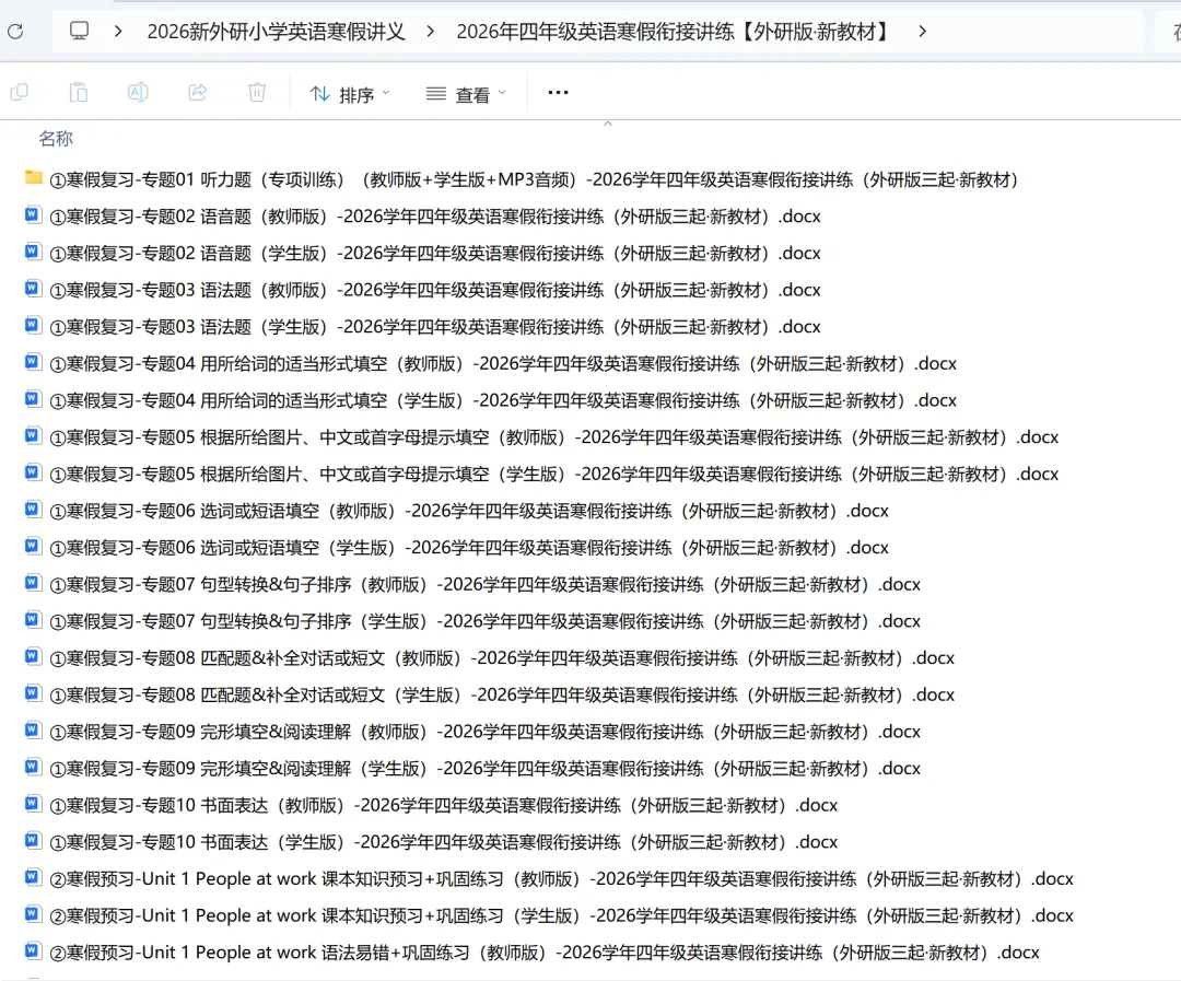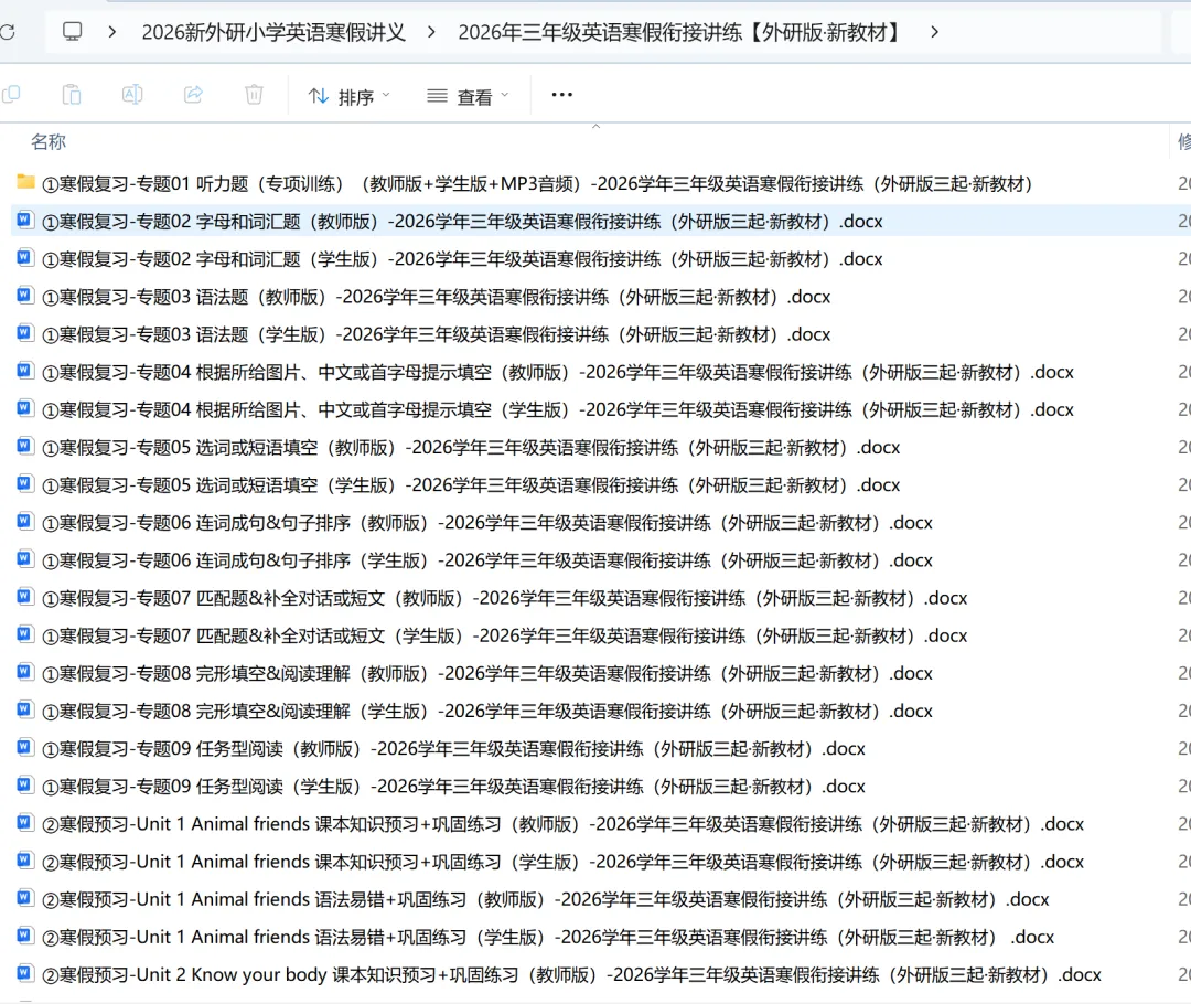 2026年小学英语外研版寒假衔接