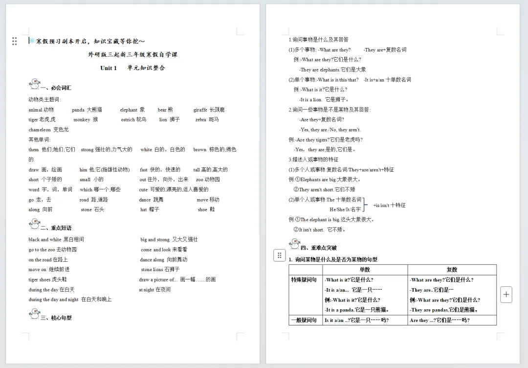 最新小学英语外版版寒假衔接讲义