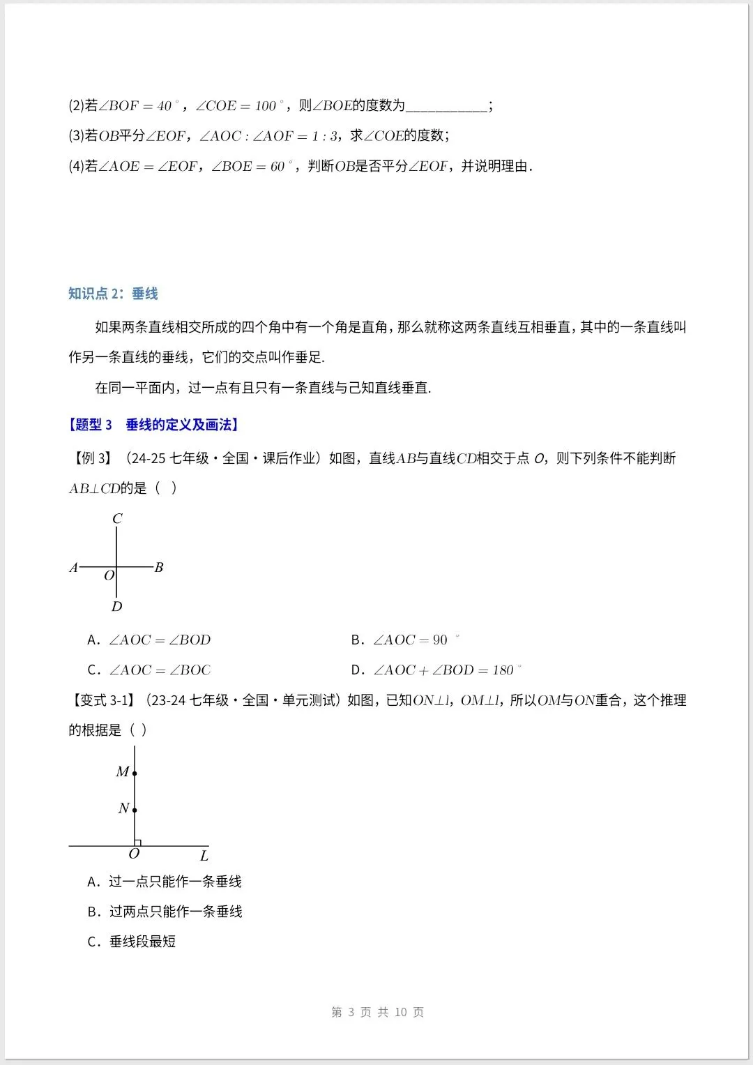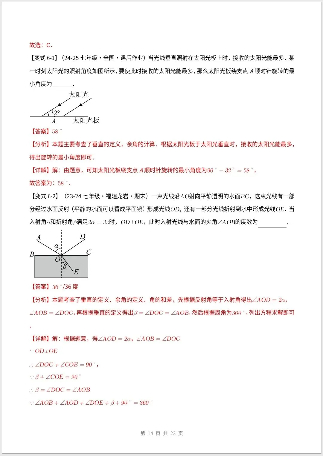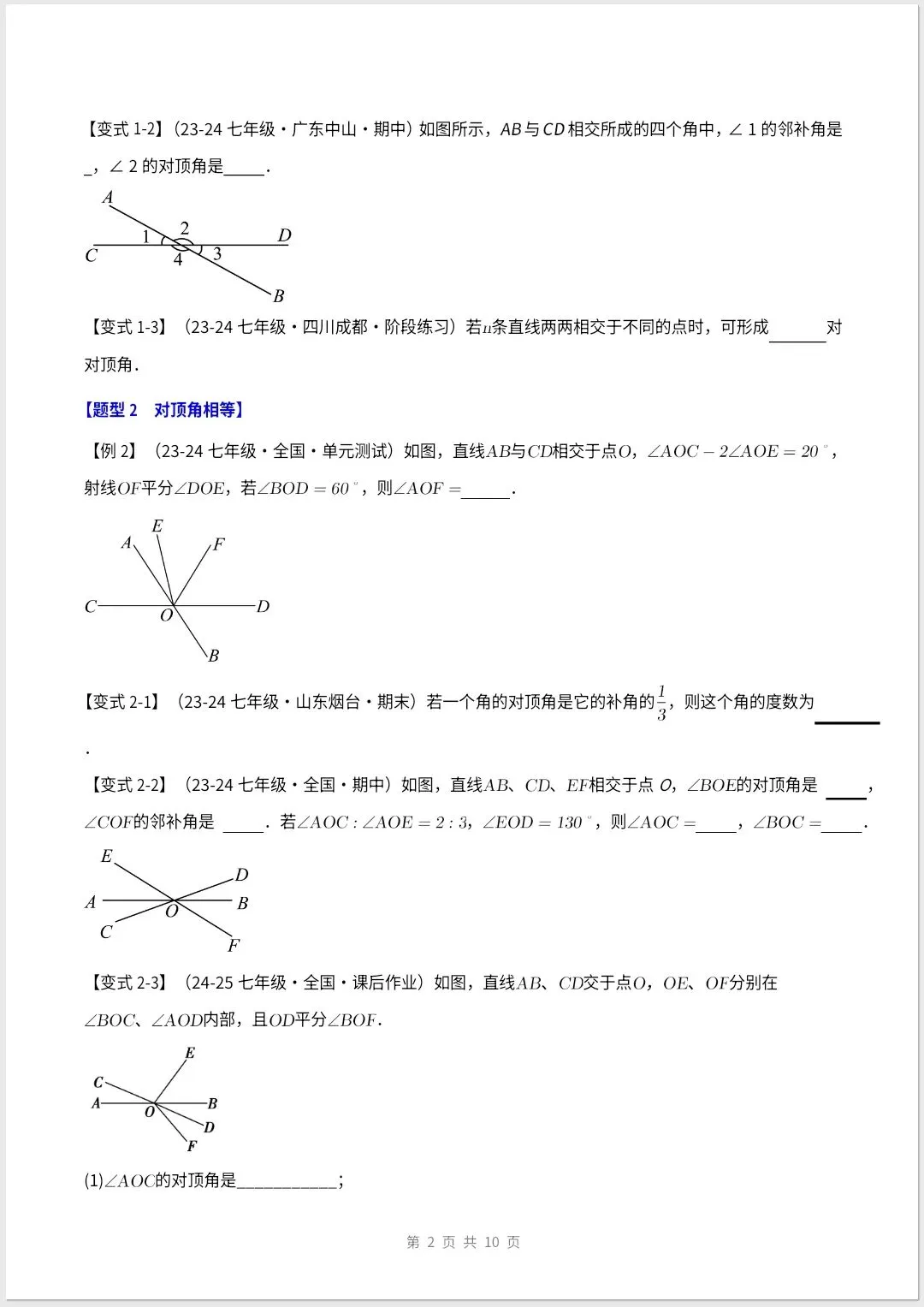2026新版七下数学同步讲义相交线(八大题型)习题+解析,有完整版可打印