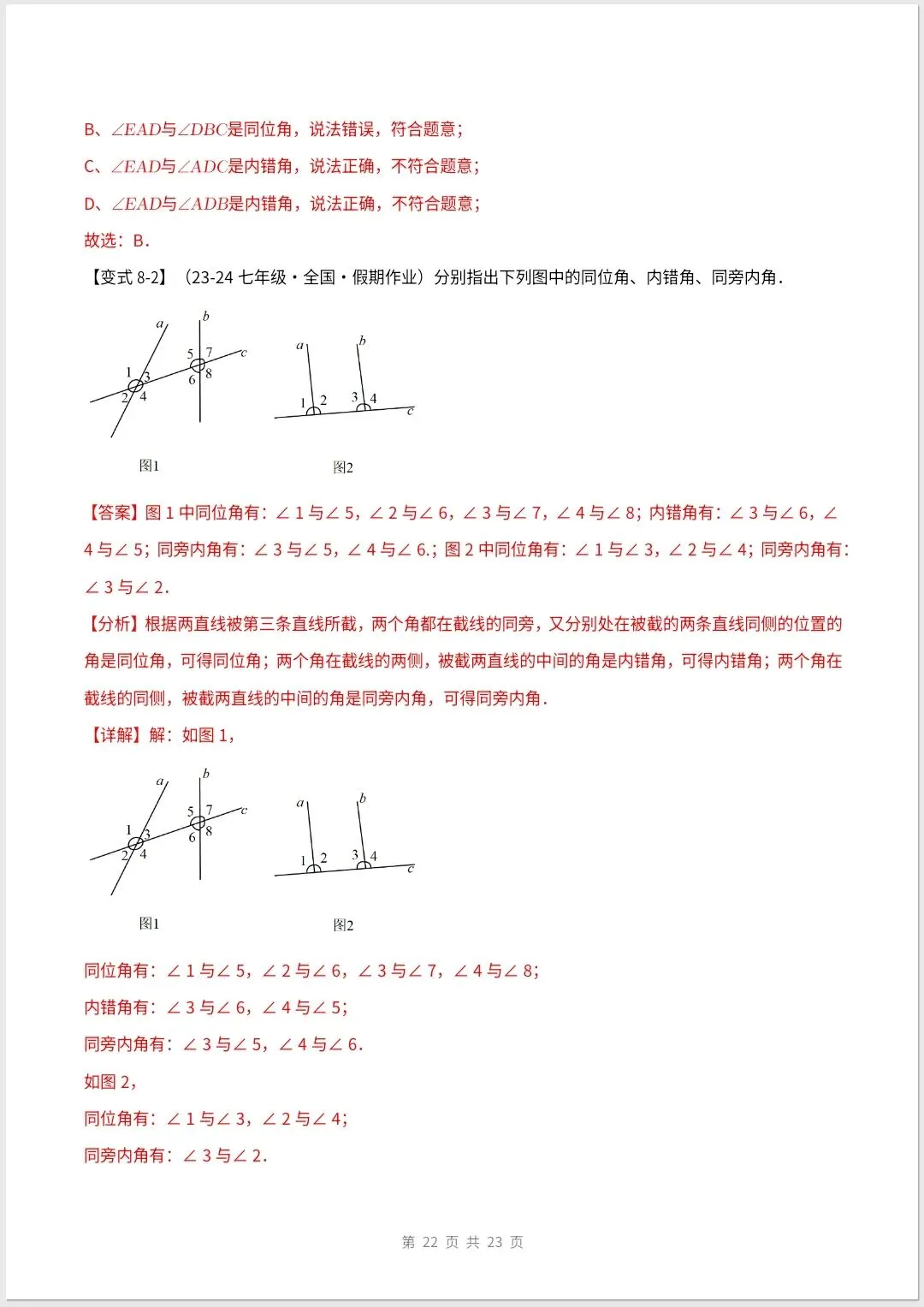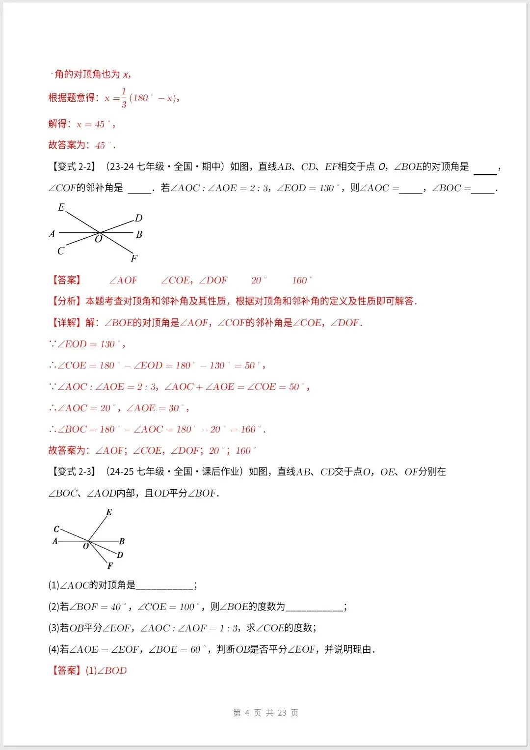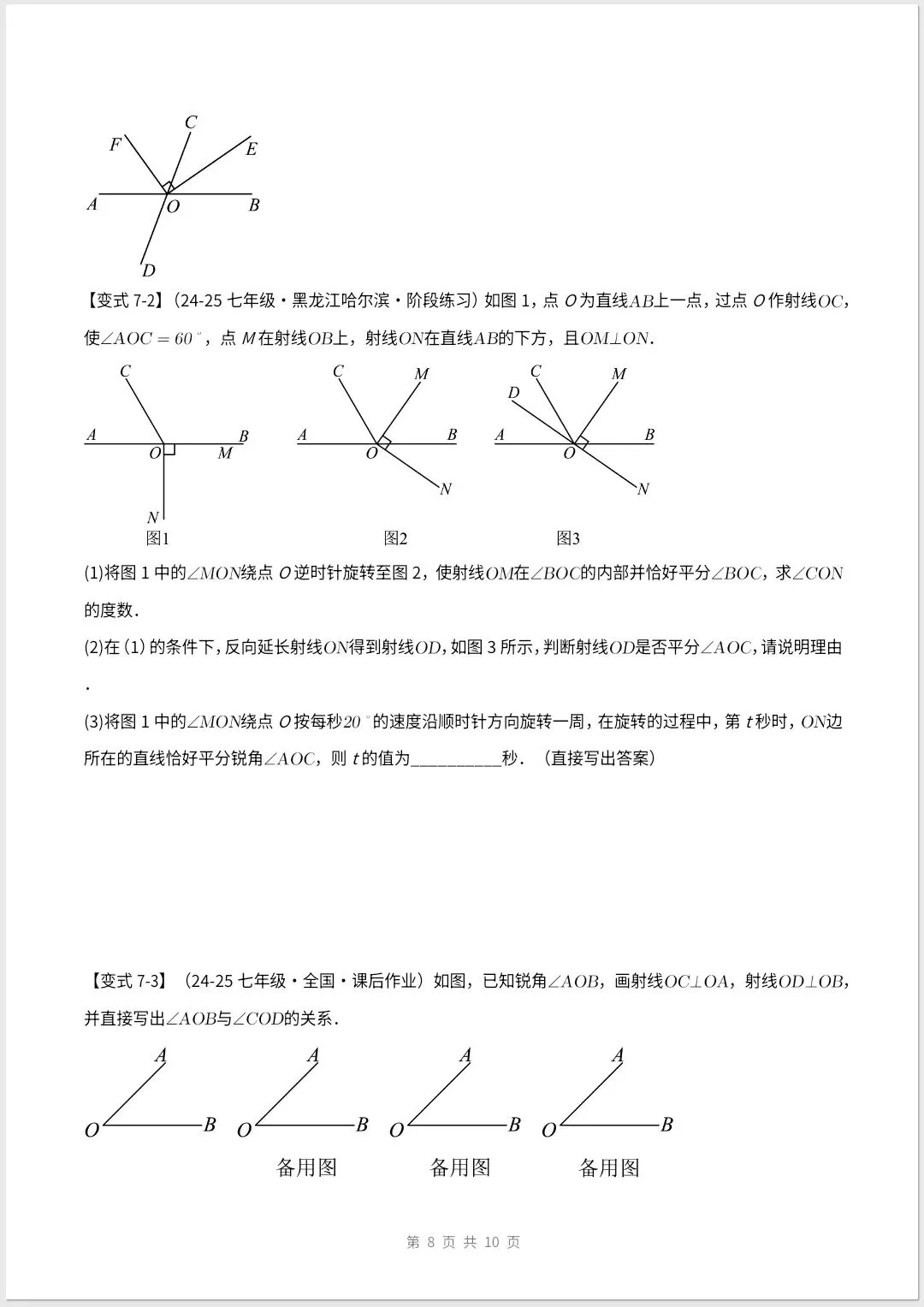 2026新版七下数学同步讲义相交线(八大题型)习题+解析,有完整版可打印