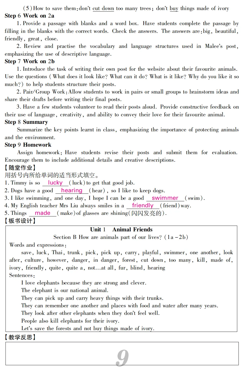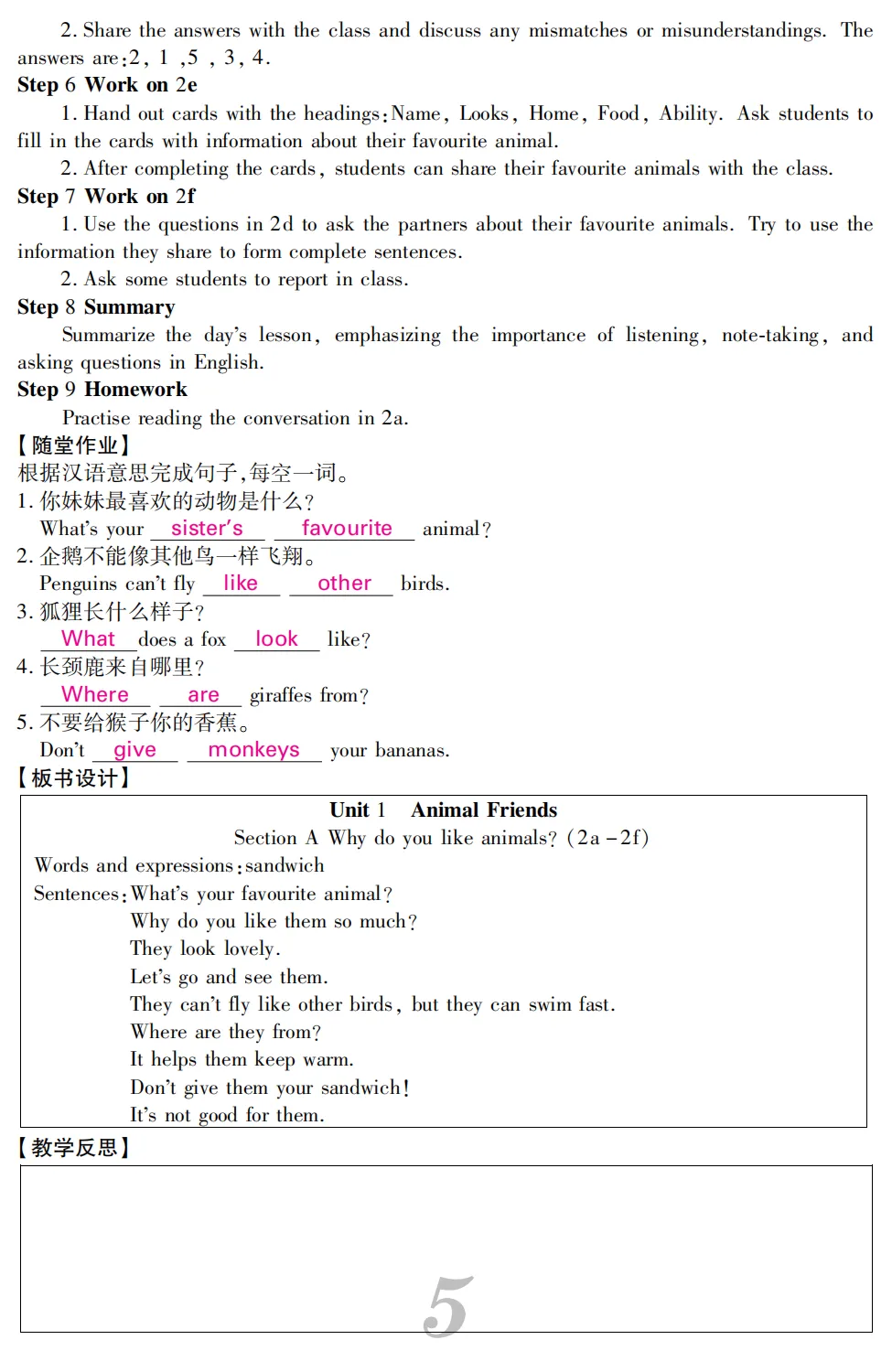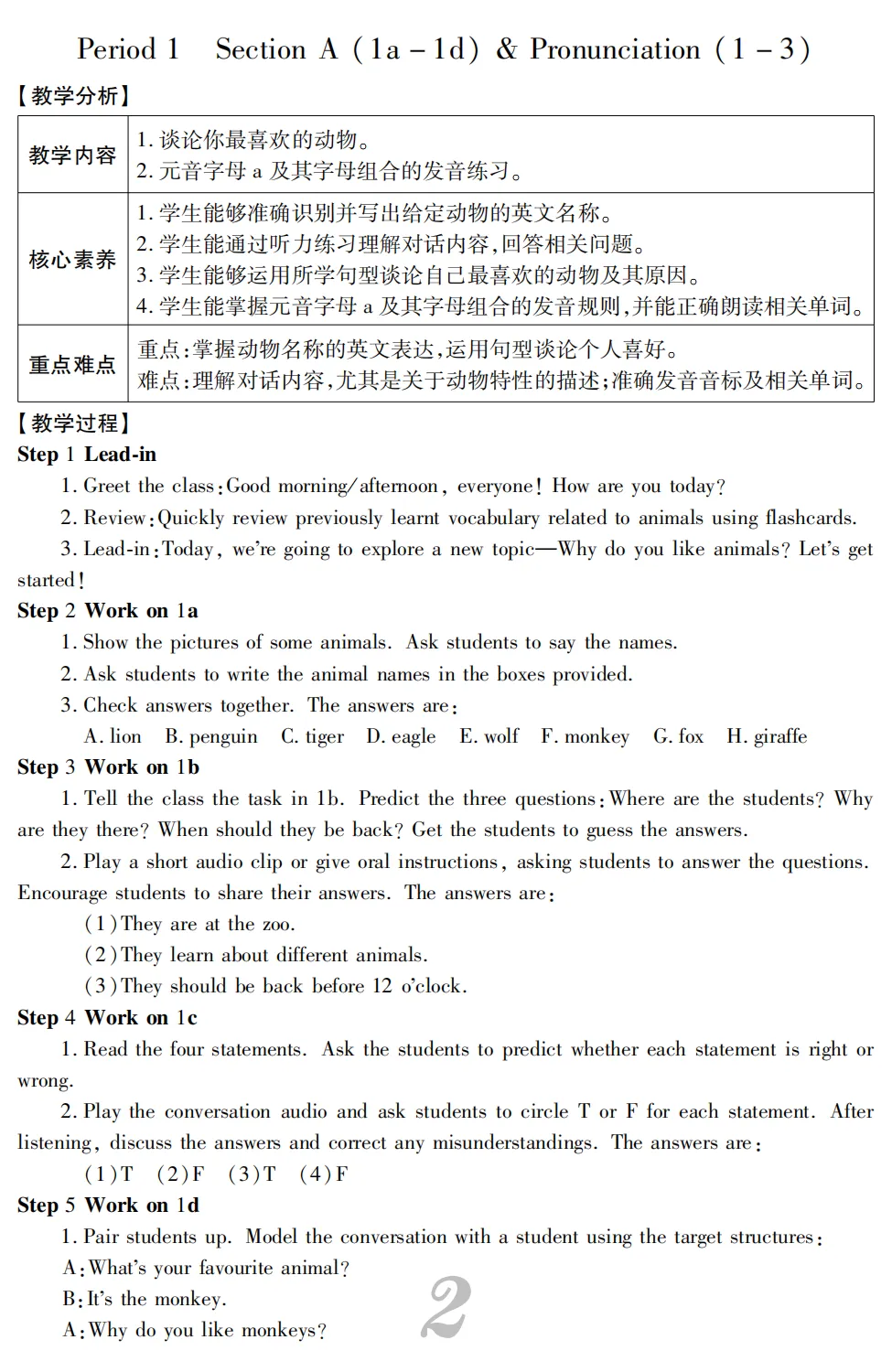 >2026人教版七年级英语下册教案教学设计含教学反思