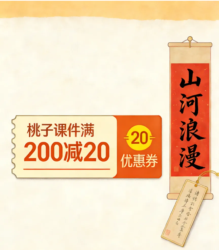 「桃子课件满200减20优惠券」