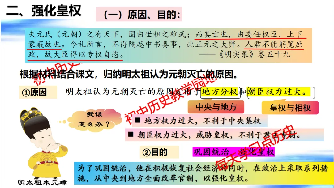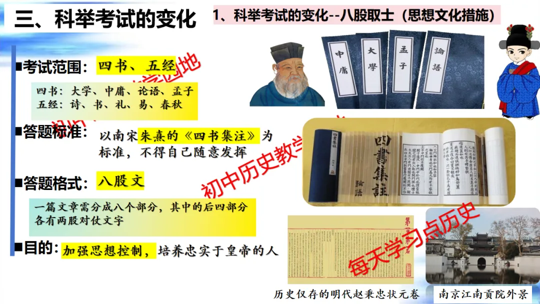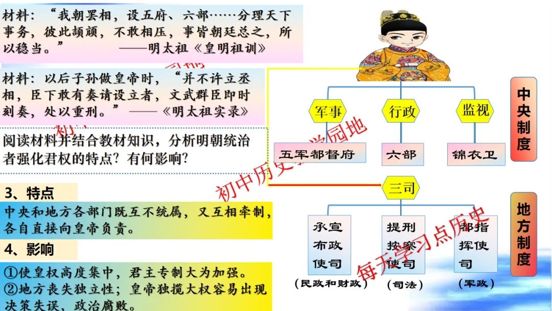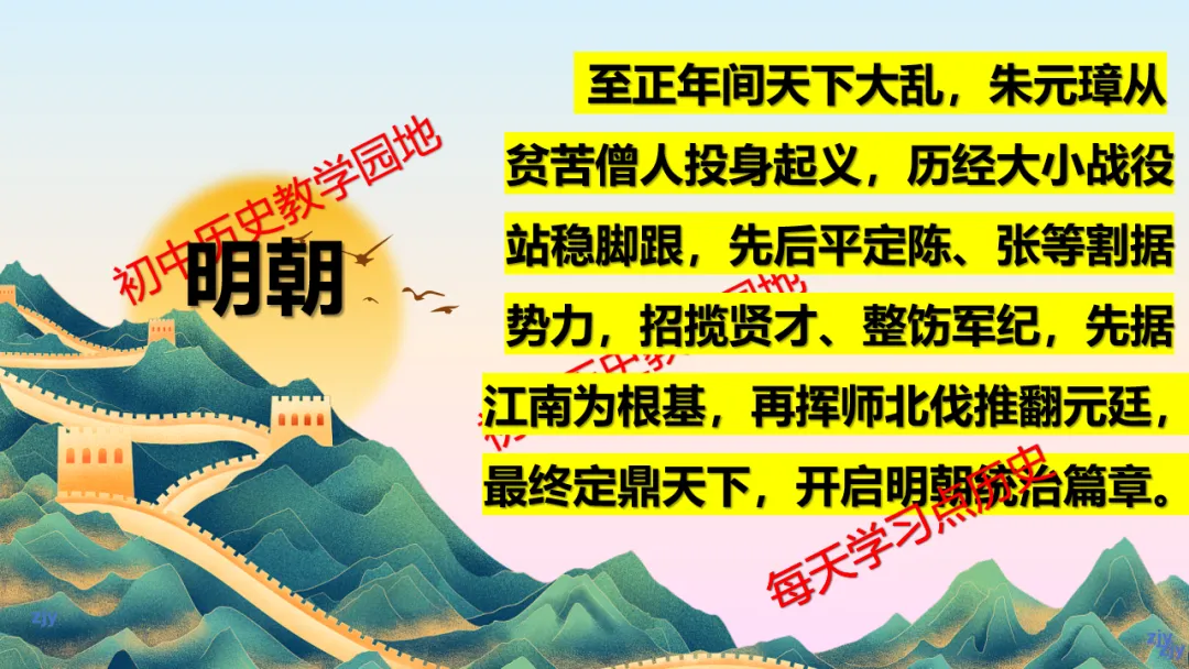 每天学习点历史公众号是初中历史教学园地的辅助号,发表的资料习题多点