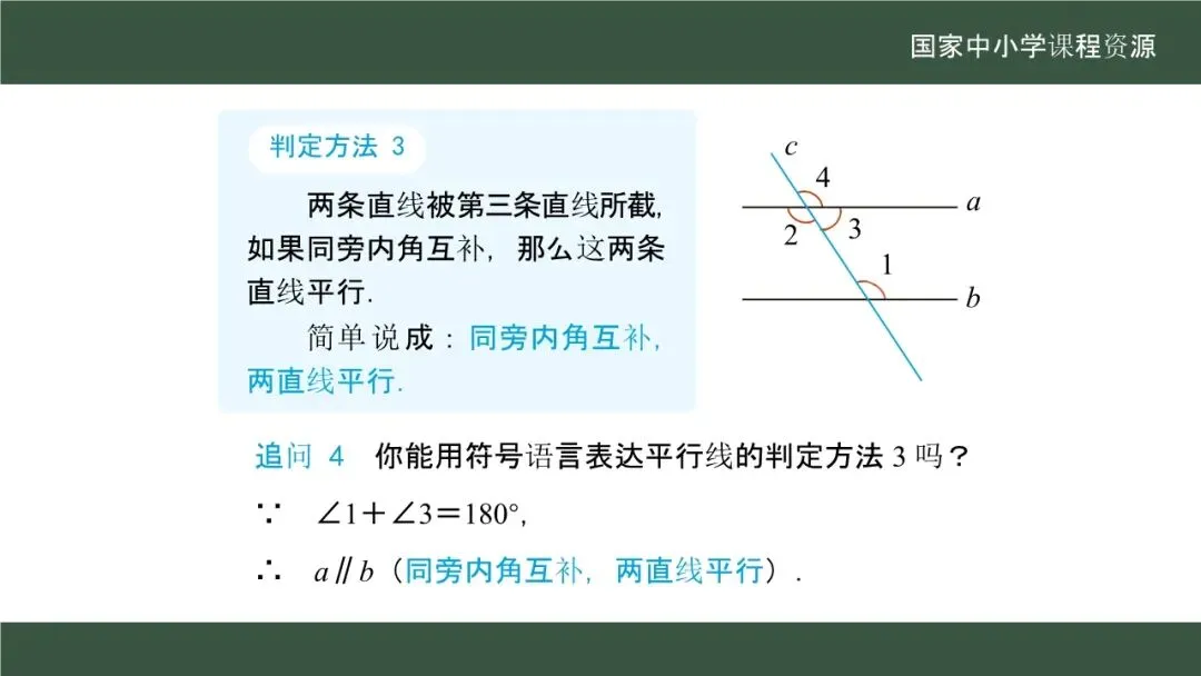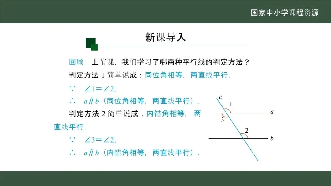 当前位置:首页>课件>【教学课件】(新教材)人教版初中数学七年级下册《7.2.2 平行线的判定》(第2课时)