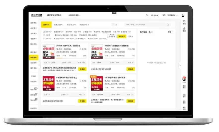 赠送老妖精消防题库(53题库+必做好题题库),手机、电脑端同步可用,碎片化时间全利用。九大高效功能,帮你精准定位薄弱点,反复打磨易错点,备考效率直接翻倍,老妖精学员人手必备!