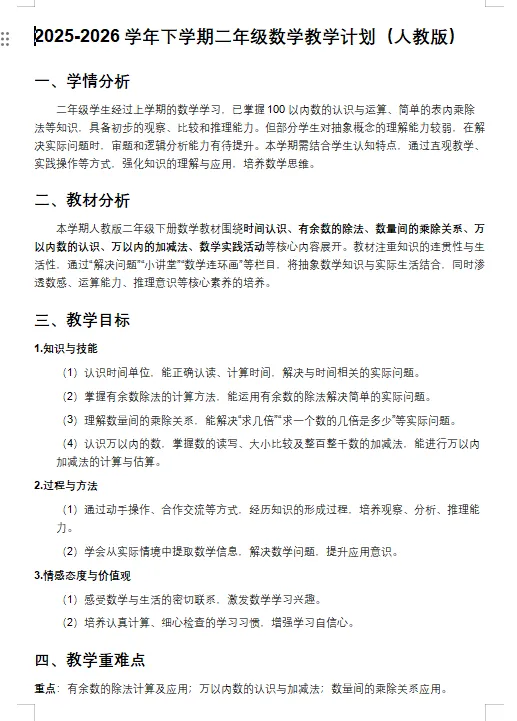 2026春新版人教版小学数学3下课件+教案+导学案+课堂笔记【可下载打印】