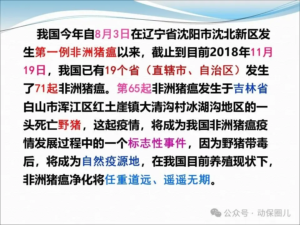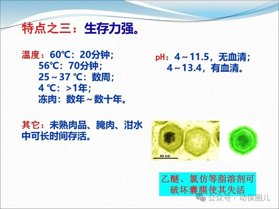 当下,田间存在非洲猪瘟弱毒株流行,由于毒力减弱、排毒不规律、检出率低,拔牙不太管用,体现在不易察觉、不易检测、不易剔除、不易溯源,是否其生物学特性发生了变化?孙元研究员认为,非洲猪瘟弱毒株的传播方式、感染途径没有变,对高温、干燥、强酸、强碱的敏感性没有变,因此对非洲猪瘟强毒适用的消毒剂和生物安全措施依然有效。同时,非洲猪瘟弱毒株的弱与强是有针对性的,对于健康猪来说,它是弱毒;对于病弱猪、亚健康猪和怀孕母猪,它就不弱;而且,在持续带毒、变异,不定期散毒,应激条件下也容易被激活。