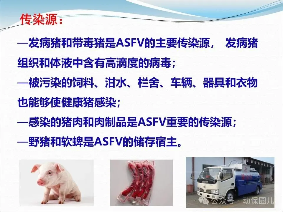 非洲猪瘟病毒通过猪及其产品、人员、载体(饮水、饲料、车辆等)、生物(蚊蝇蜱、鼠鸟、猫狗)入侵猪场,通过被污染的饮水和饲料、伤口、注射、配种和吸入带病毒的粉尘或气溶胶进入猪体内,其不同介质携带ASFV的风险:人员>物资>车辆>环境。定期检测病毒核酸和抗体,加强巡栏,异常猪必检,引种必检,门口栏舍、风机口、出猪台和料杯、隔离舍列为重点监测部位,有助于发现非瘟弱毒。
