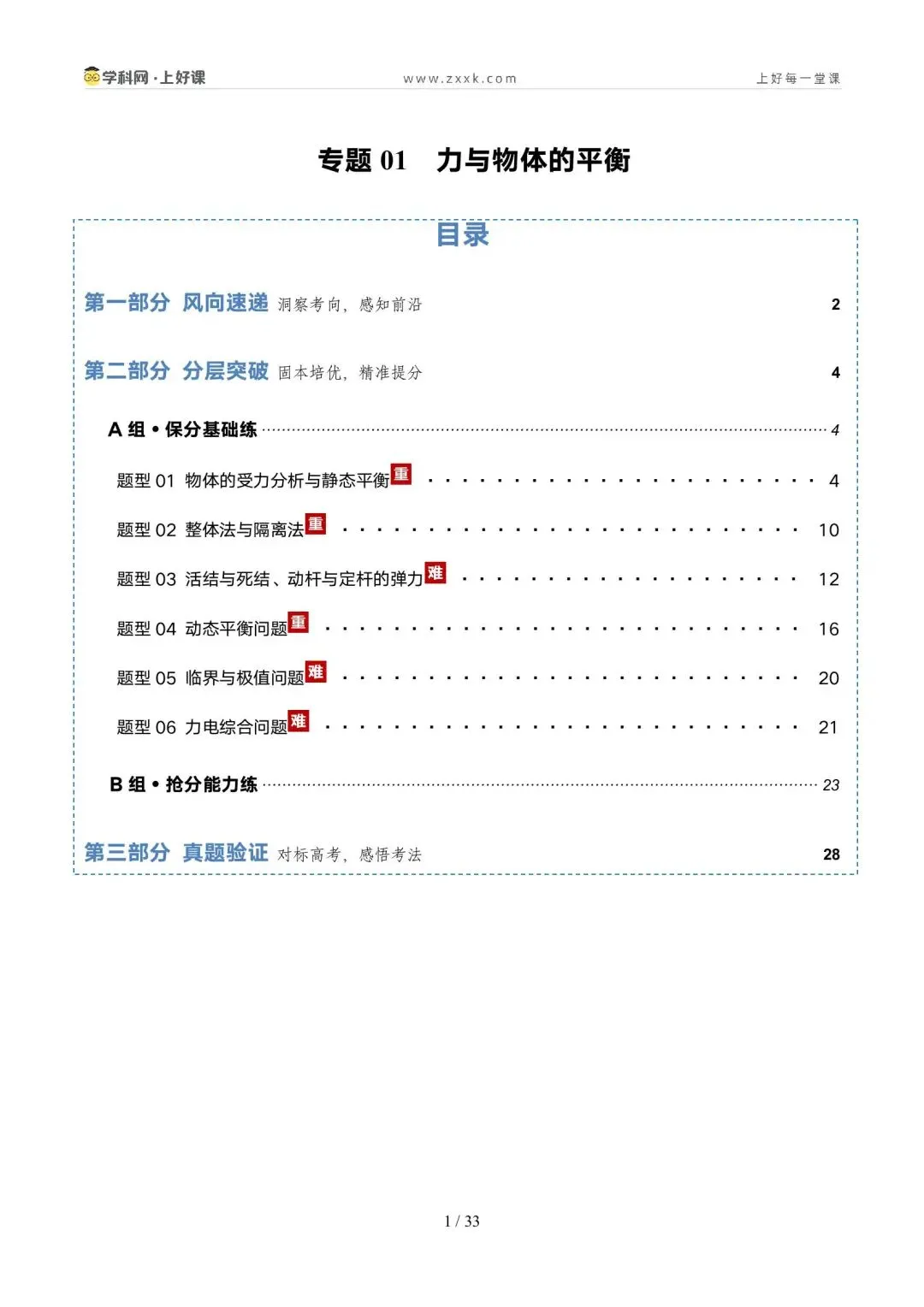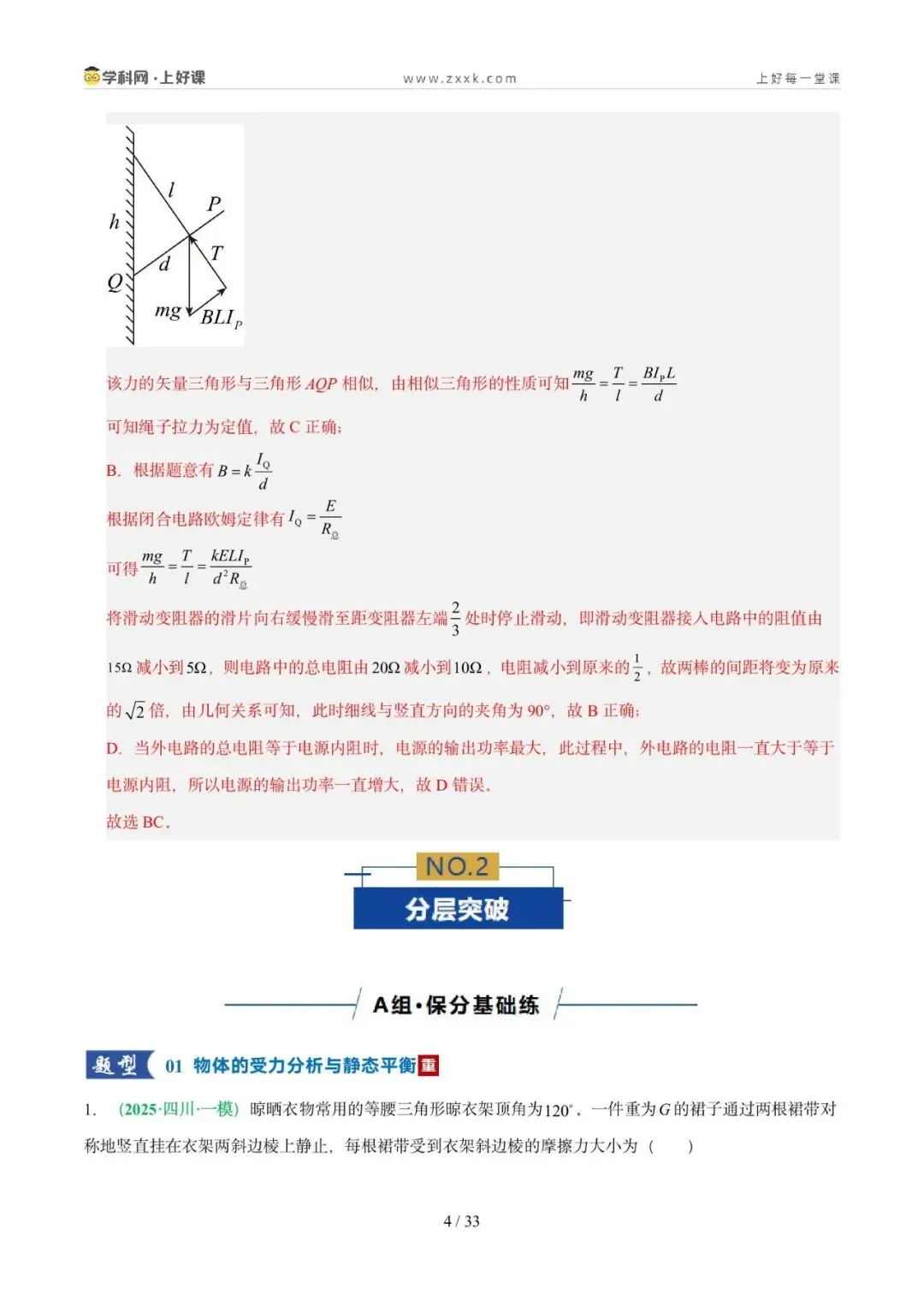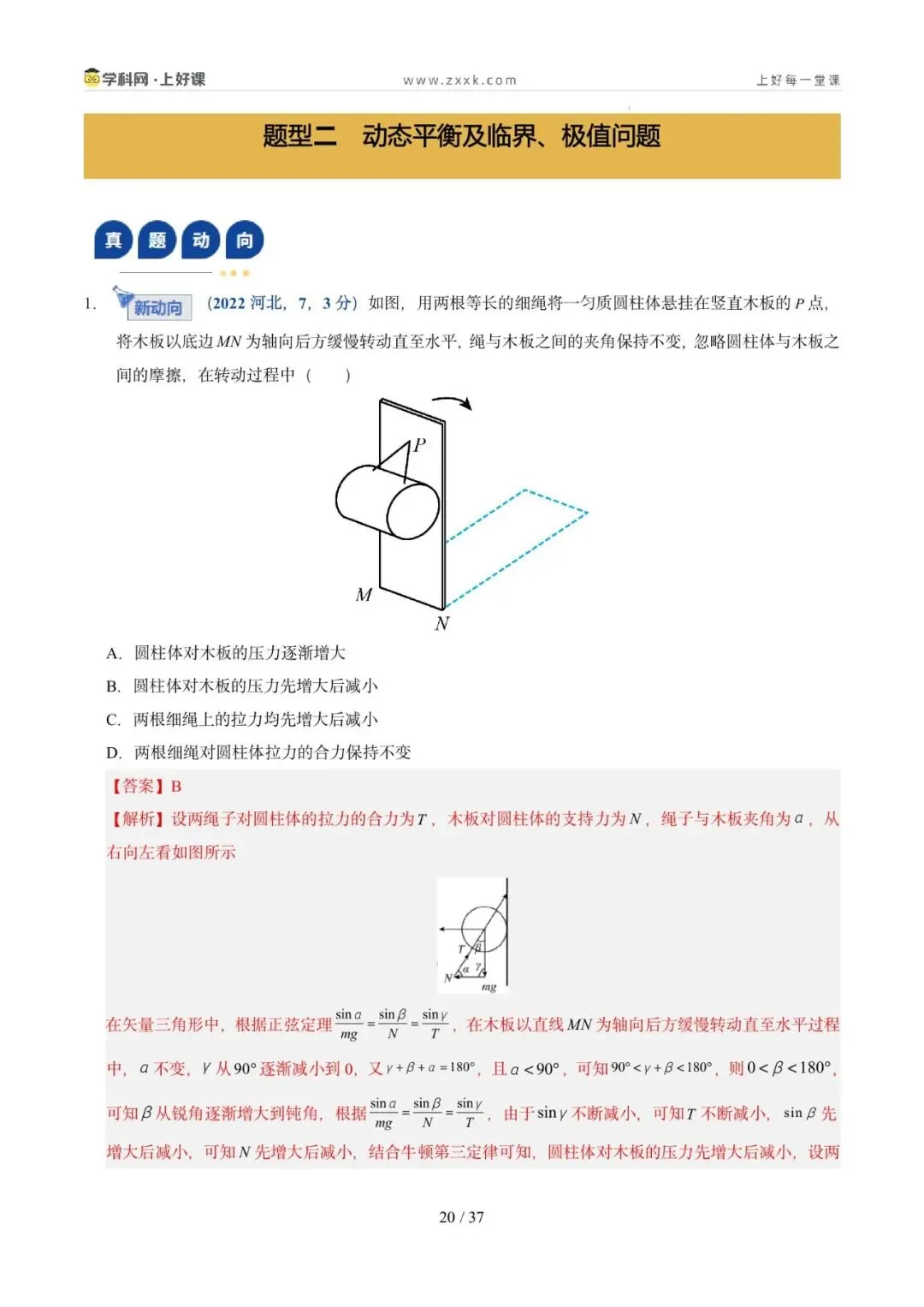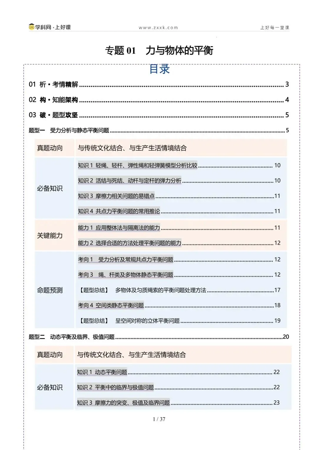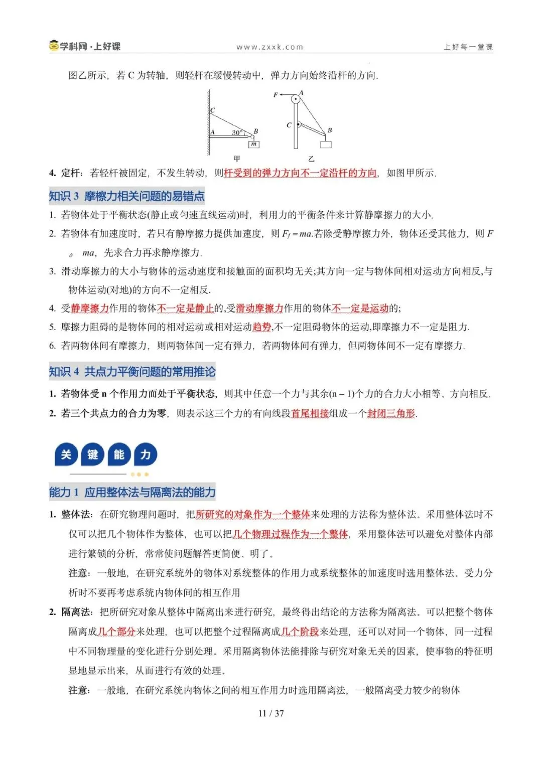 2. 能灵活选取研究对象、会根据实际情况构建平衡模型分析动态平衡问题,掌握常见的处理动态平衡问题的方法,并会处理平衡中的临界与极值问题。核心能力:掌握临界法、函数法、图像法、整体法、隔离法等解题方法