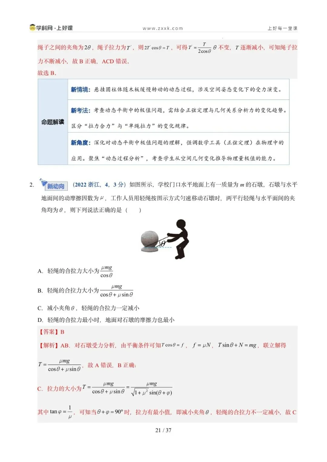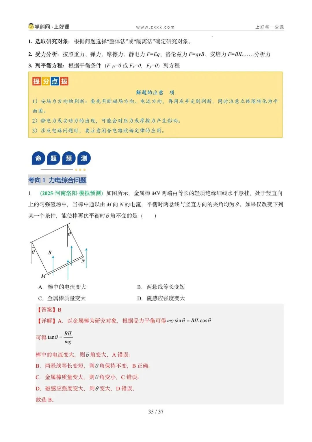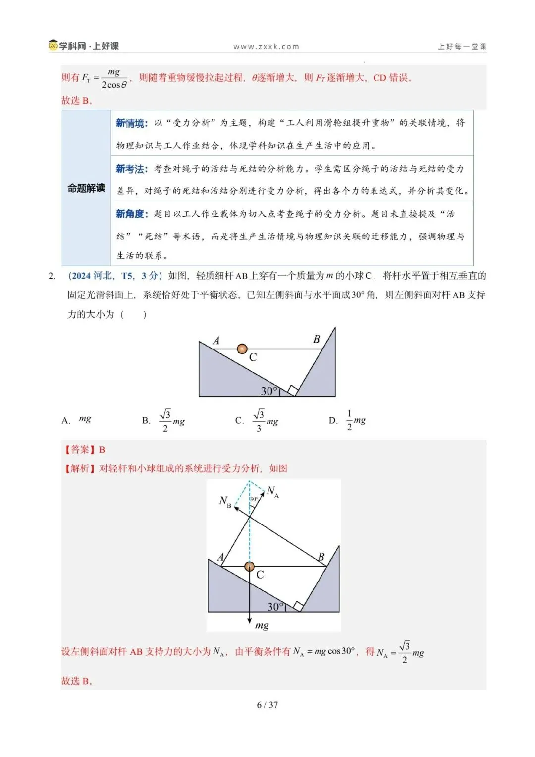 命题轨迹透视:从近三年高考试题来看,试题以选择题为主,题目难度中等。命题趋势:从单一物体的分析→多物体的静态平衡→与电磁场结合→在真实生产/生活情境中综合分析物体平衡,倾向于物体的受力分析为出发点,以反映生产生活的常见问题为切入点。