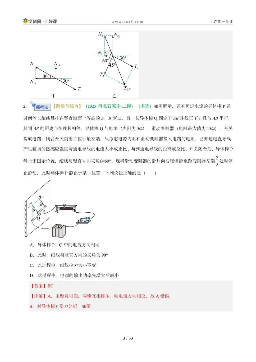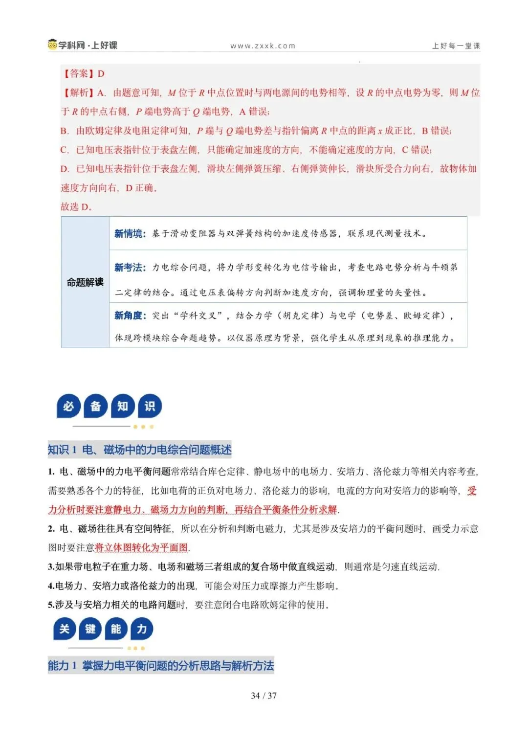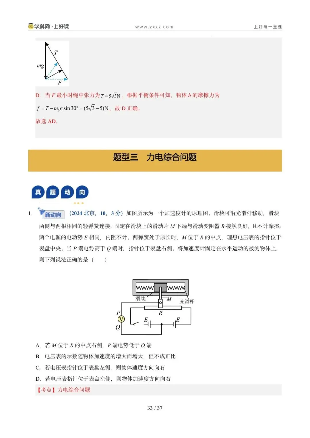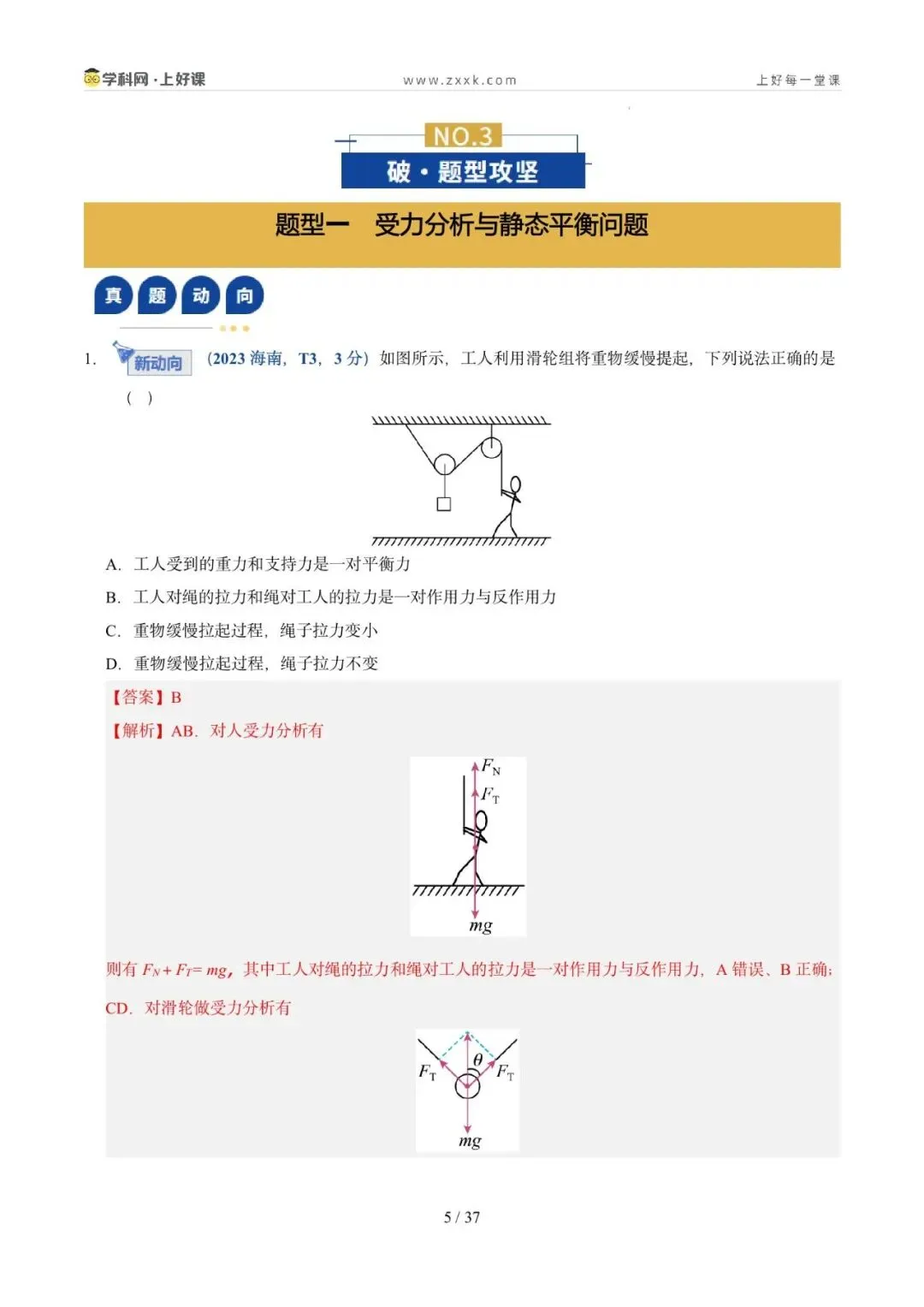 命题轨迹透视:从近三年高考试题来看,试题以选择题为主,题目难度中等。命题趋势:从单一物体的分析→多物体的静态平衡→与电磁场结合→在真实生产/生活情境中综合分析物体平衡,倾向于物体的受力分析为出发点,以反映生产生活的常见问题为切入点。
