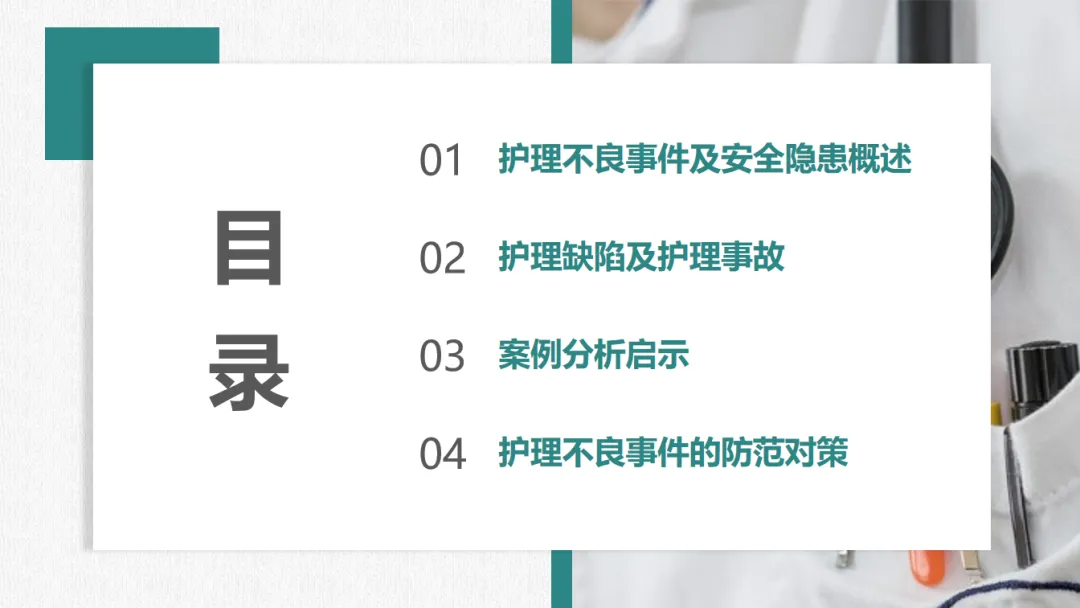 今天给大家分享一份【护理不良事件 隐患缺陷的分析预防】的课件,不良事件安全隐患的概述、护理缺陷及护理事故、案例分析、防范对策!