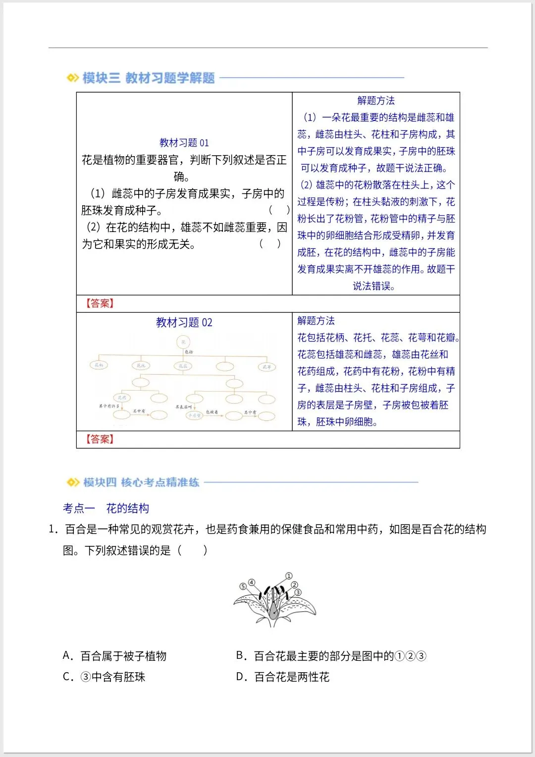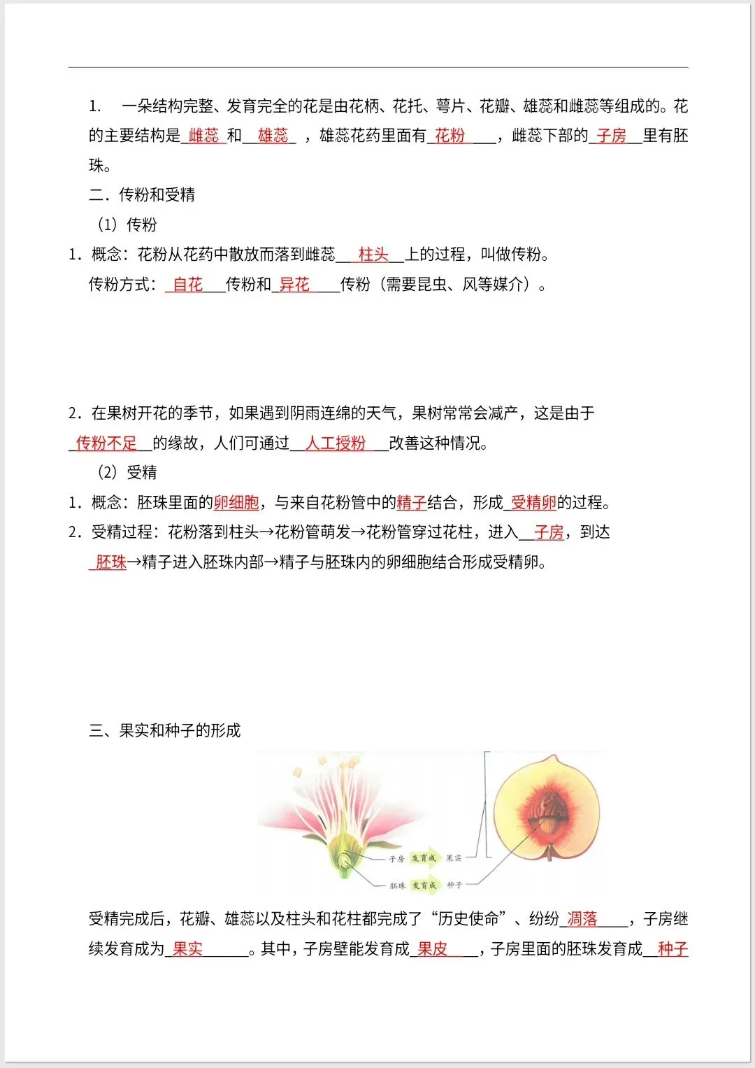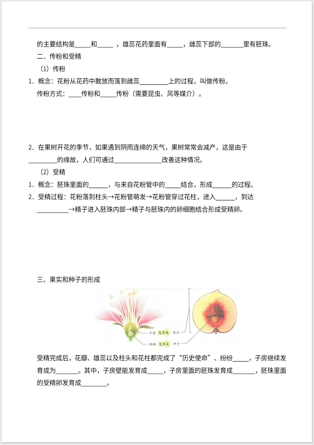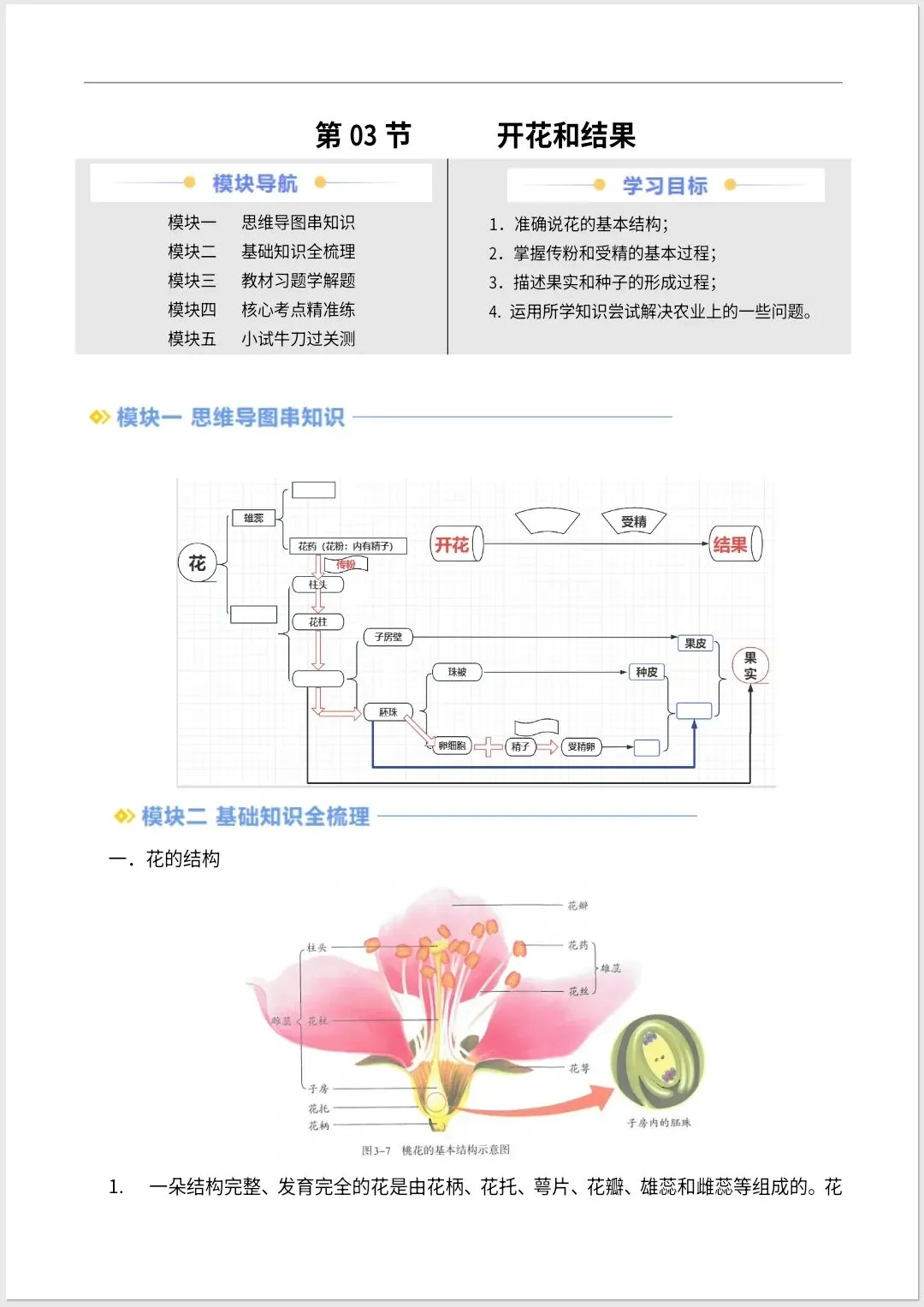 今日分享:2026新版七下生物寒假讲义开花结果(思维导图+基础知识梳理)习题+解析,有电子版可下载打印!