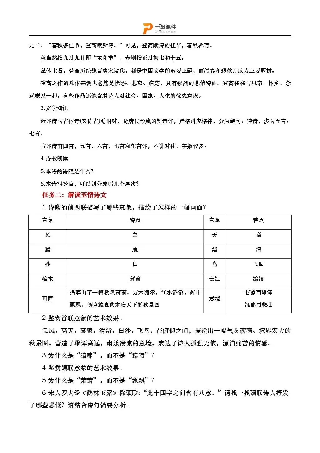 >【中职语文基础模块下】| 《登高》:课件+教学设计