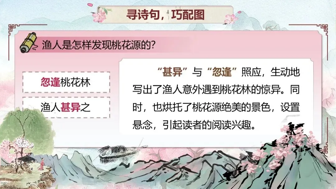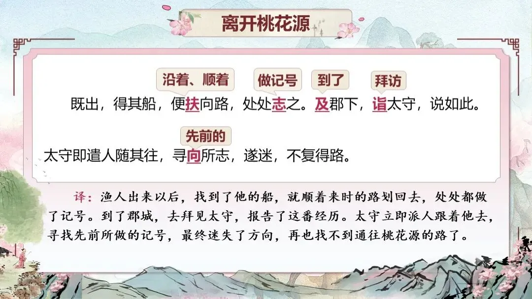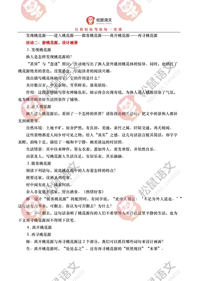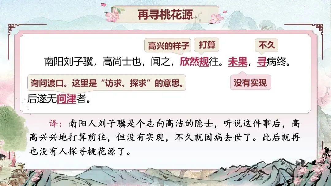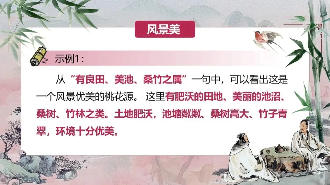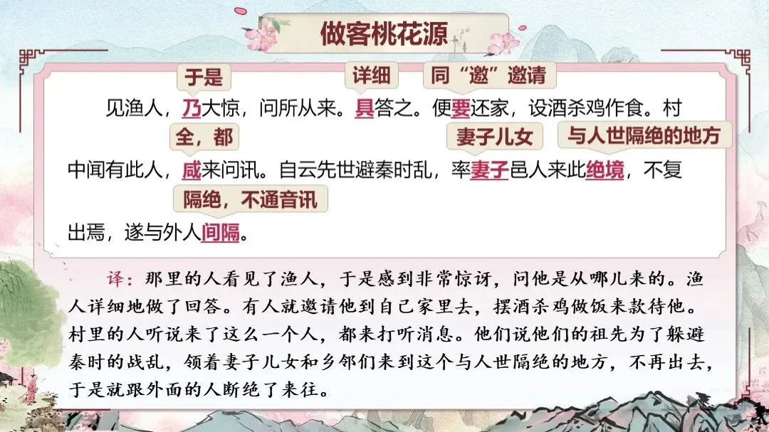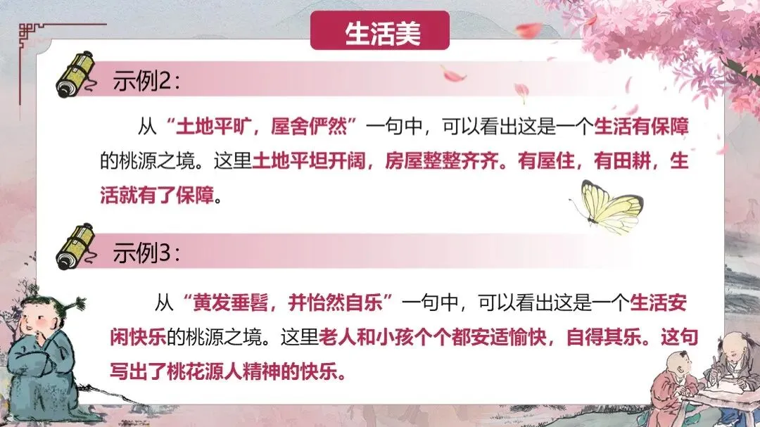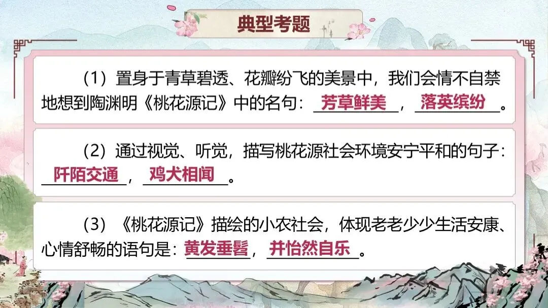 《桃花源记》是部编版教材八年级下册第三单元的第一篇课文,本文以渔人进出桃花源为线索,描绘了一幅自由安乐、恬静自然、幸福美好的人间生活图景,塑造了一个与污浊黑暗社会相对立的美好境界,以寄托自己的政治理想。