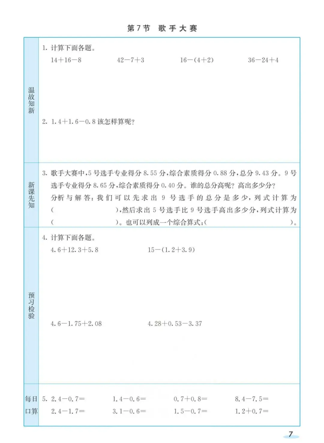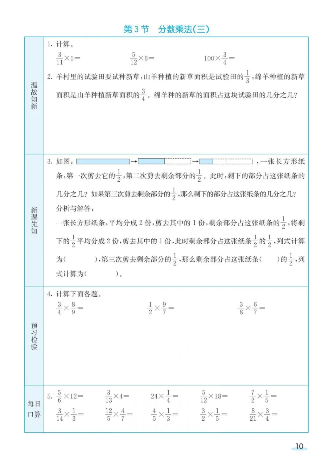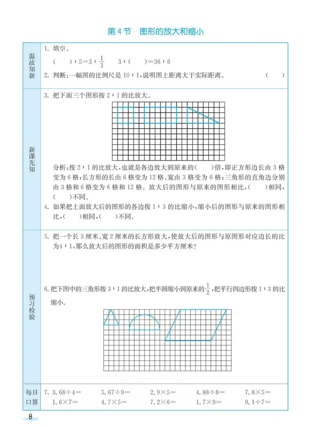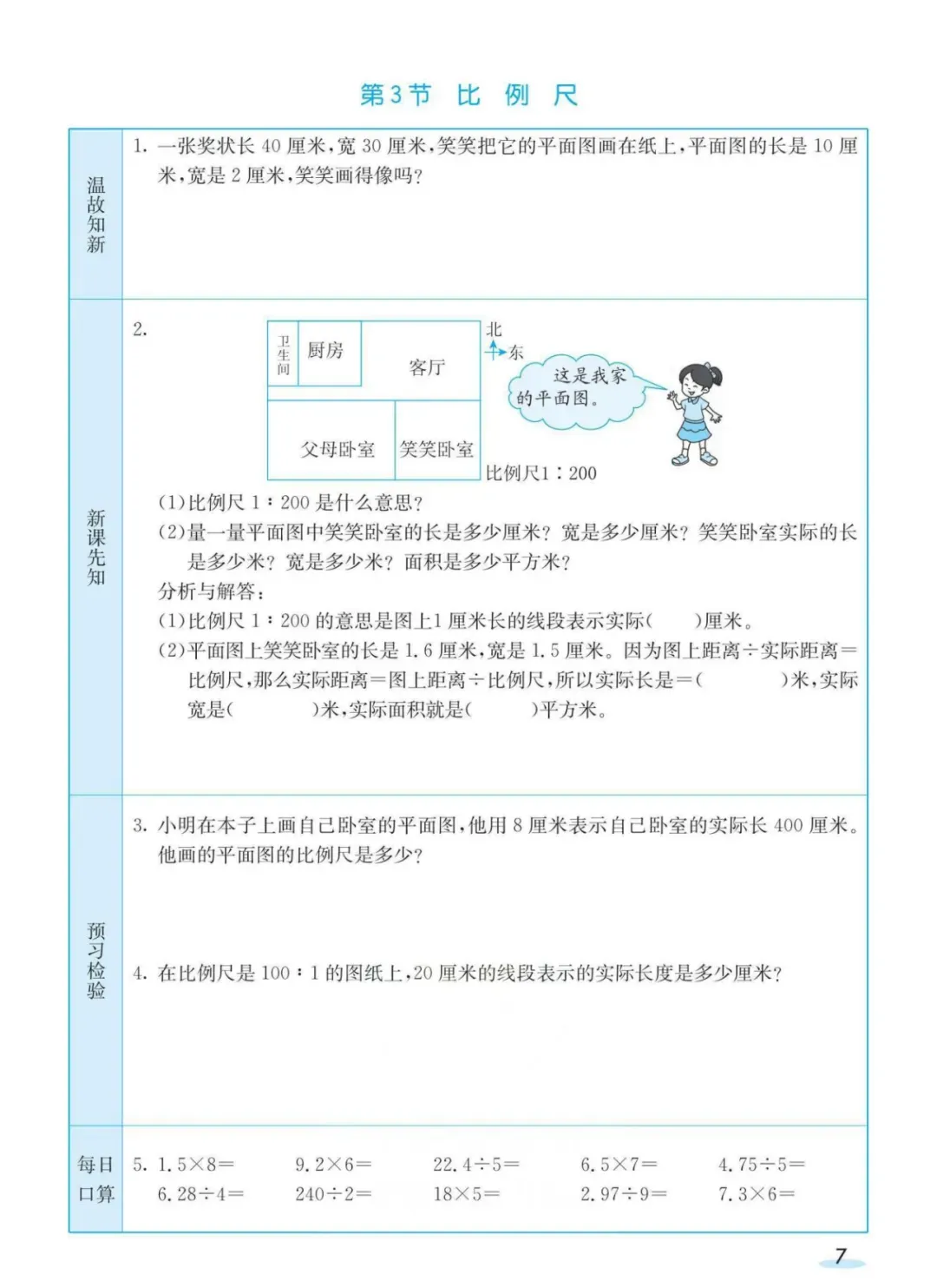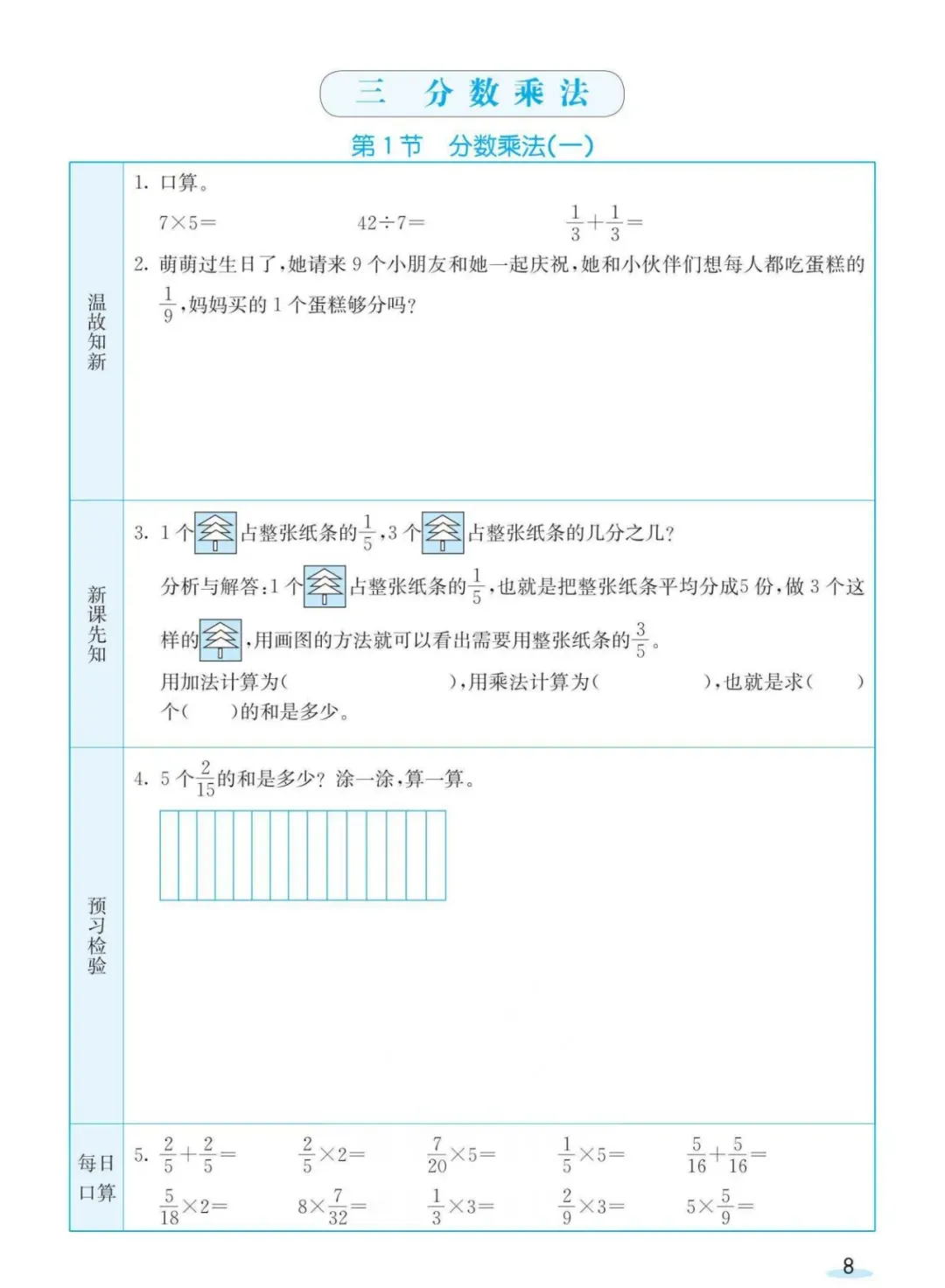 回复:北师大下册预习卡