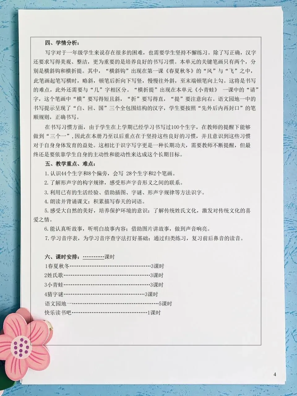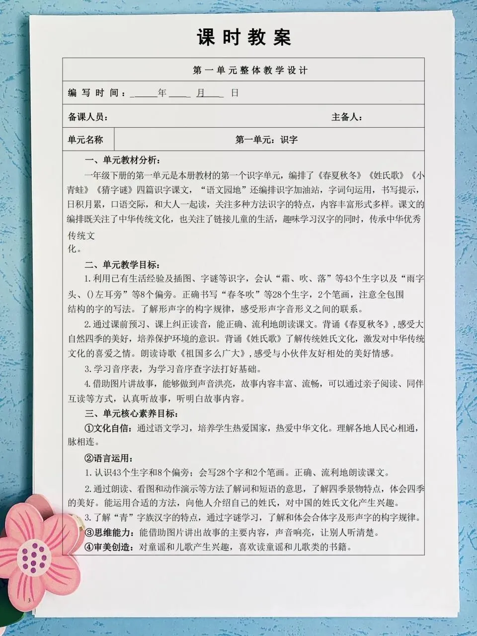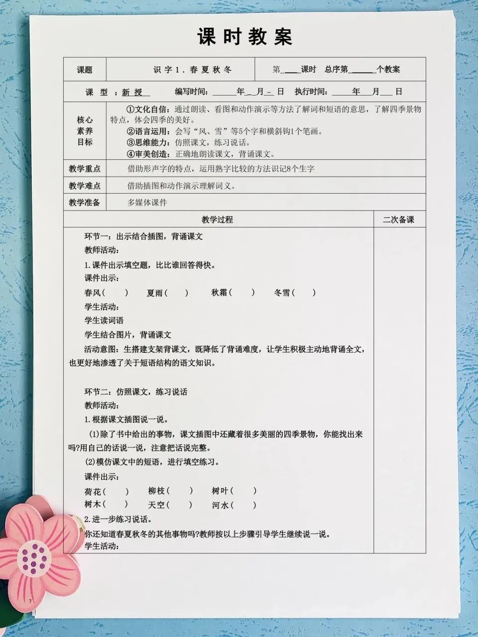 26春 语文一下 核心素养课时表格教案( 含二次备课栏)