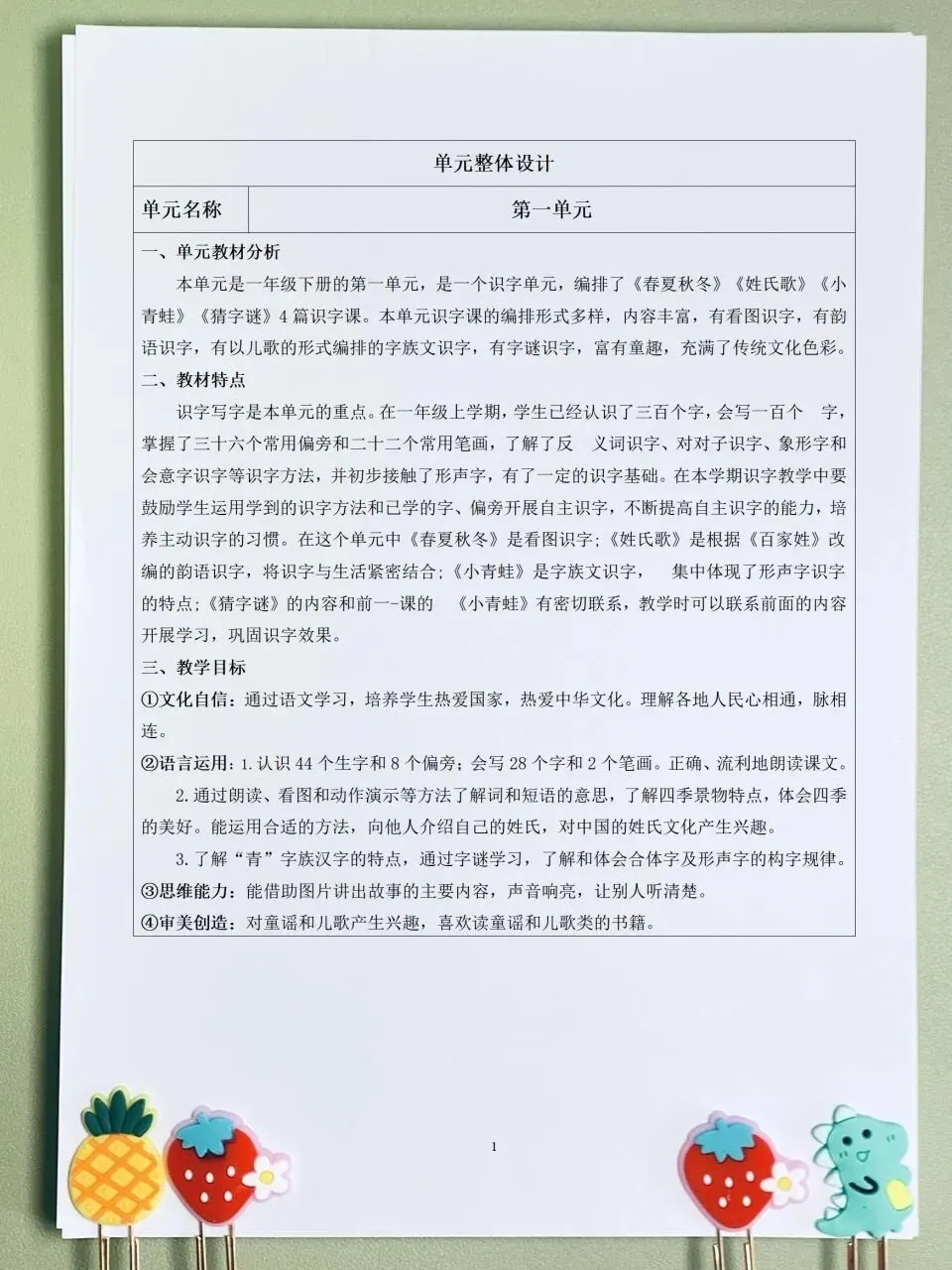 26春 一下语文 表格版教案+PPT课件