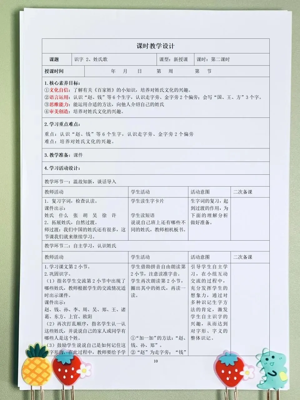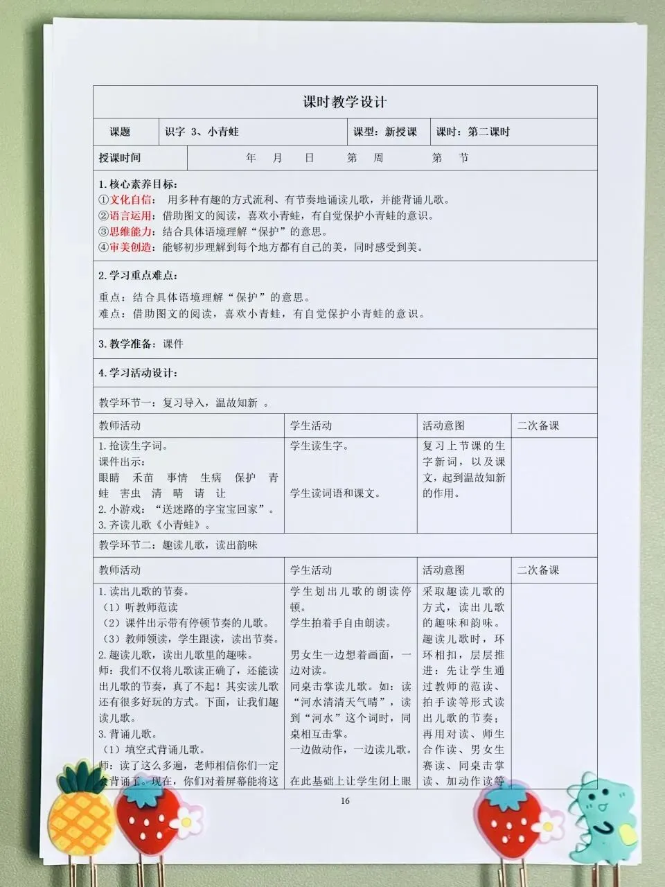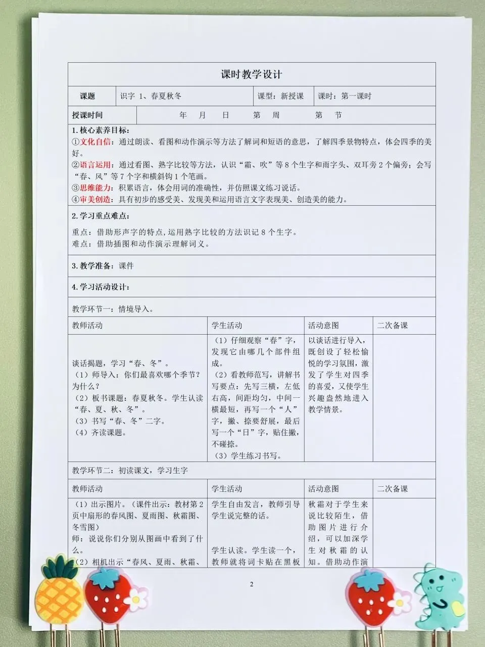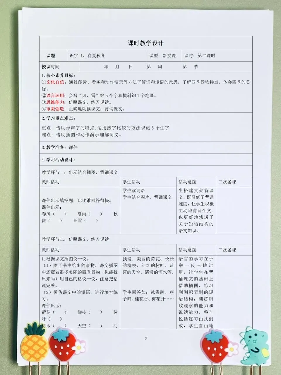 >26春 语文一下 核心素养表格教案(含师生活动、二次备课栏)