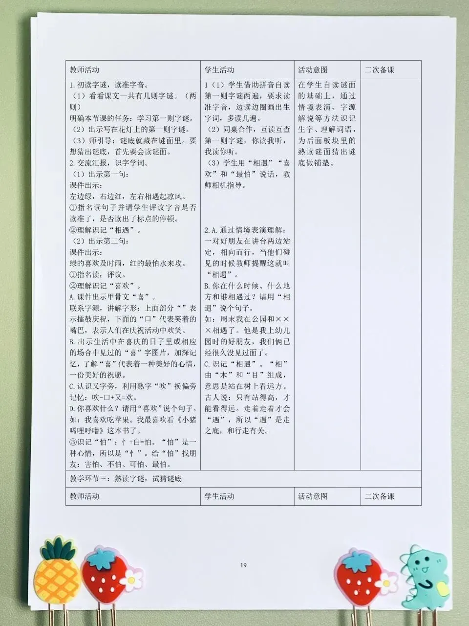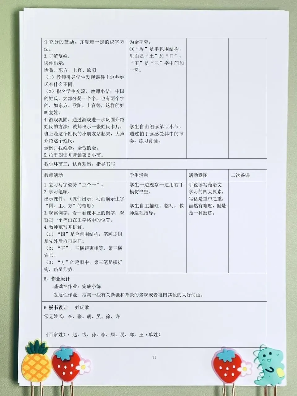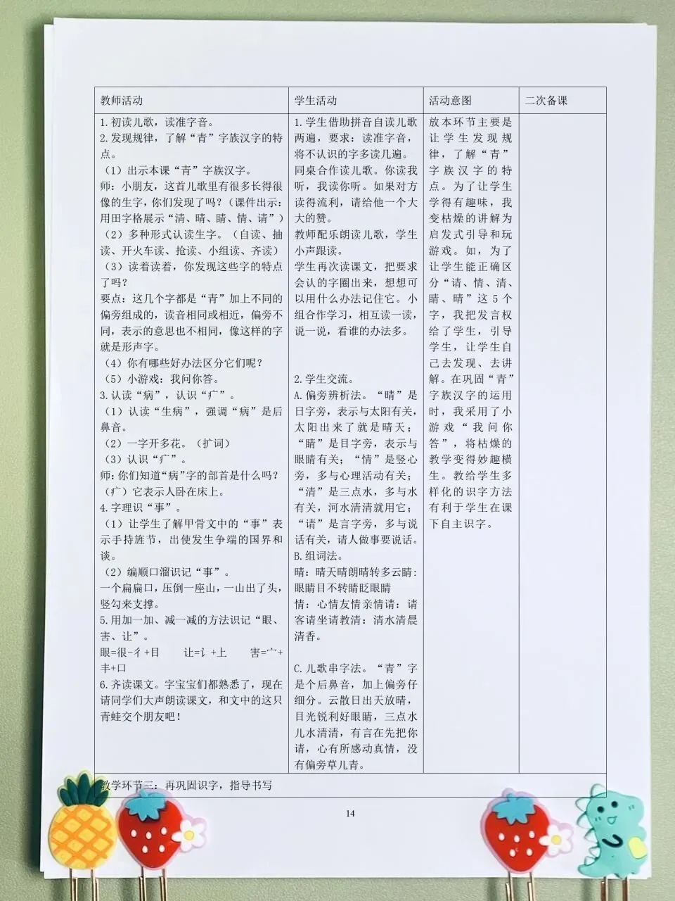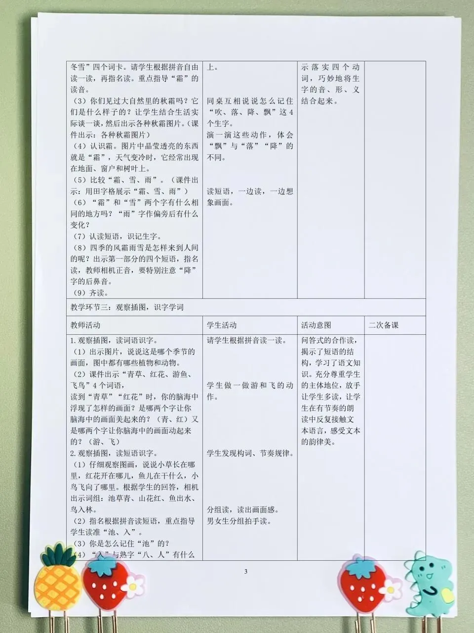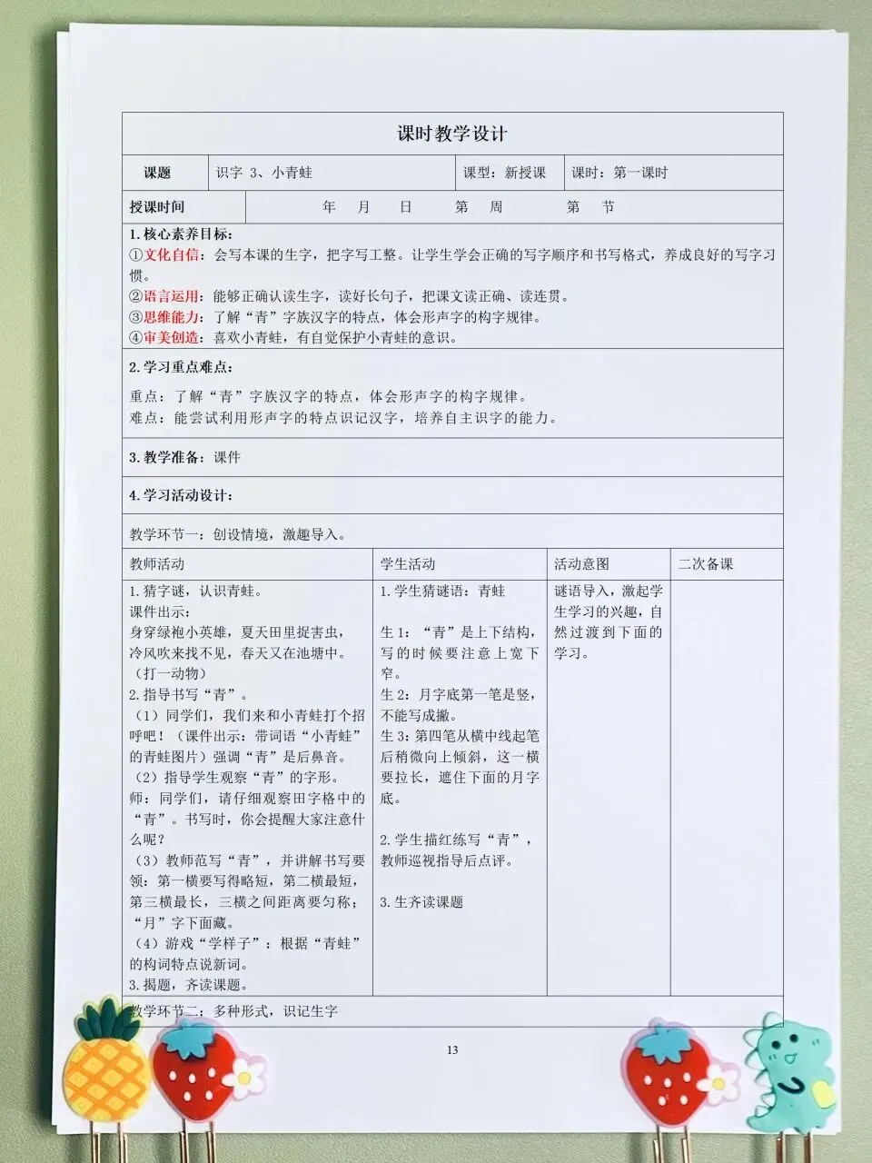 >26春 语文一下 核心素养表格教案(含师生活动、二次备课栏)