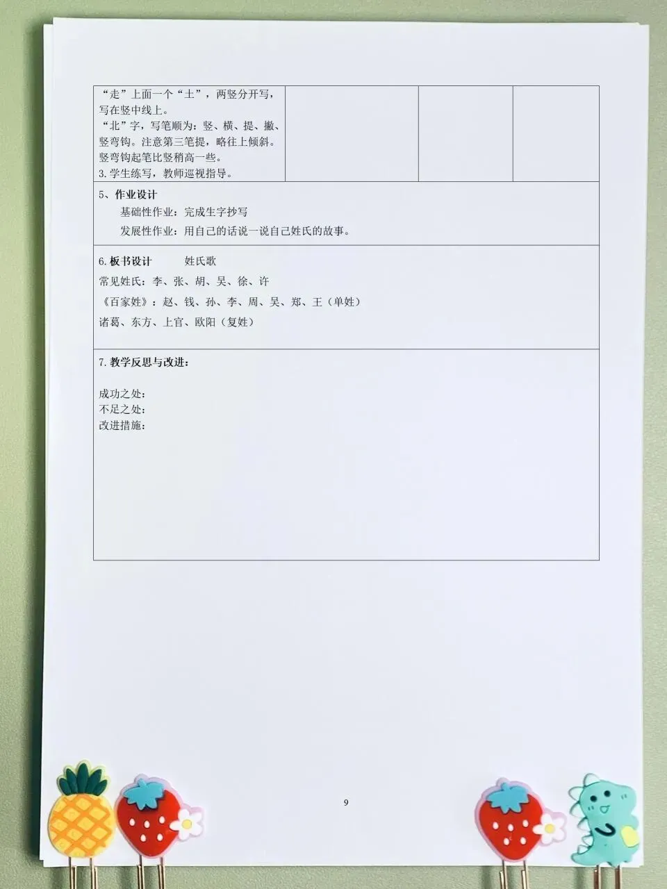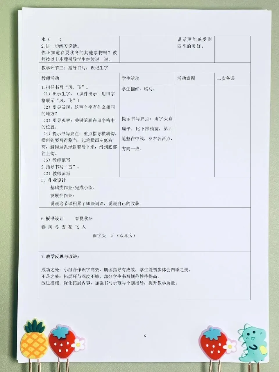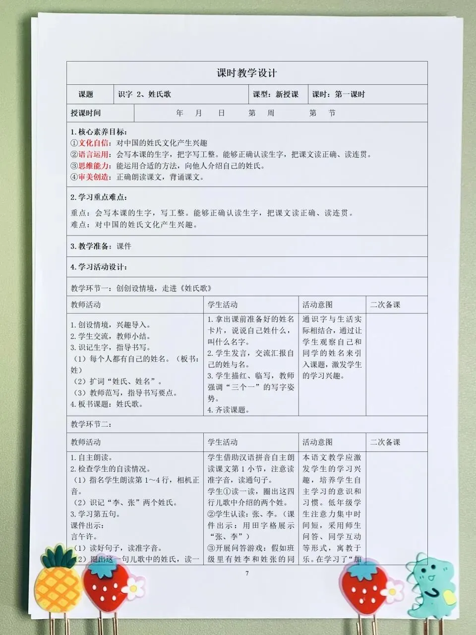 26春 语文一下 核心素养课时表格教案( 含二次备课栏)